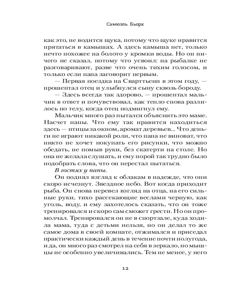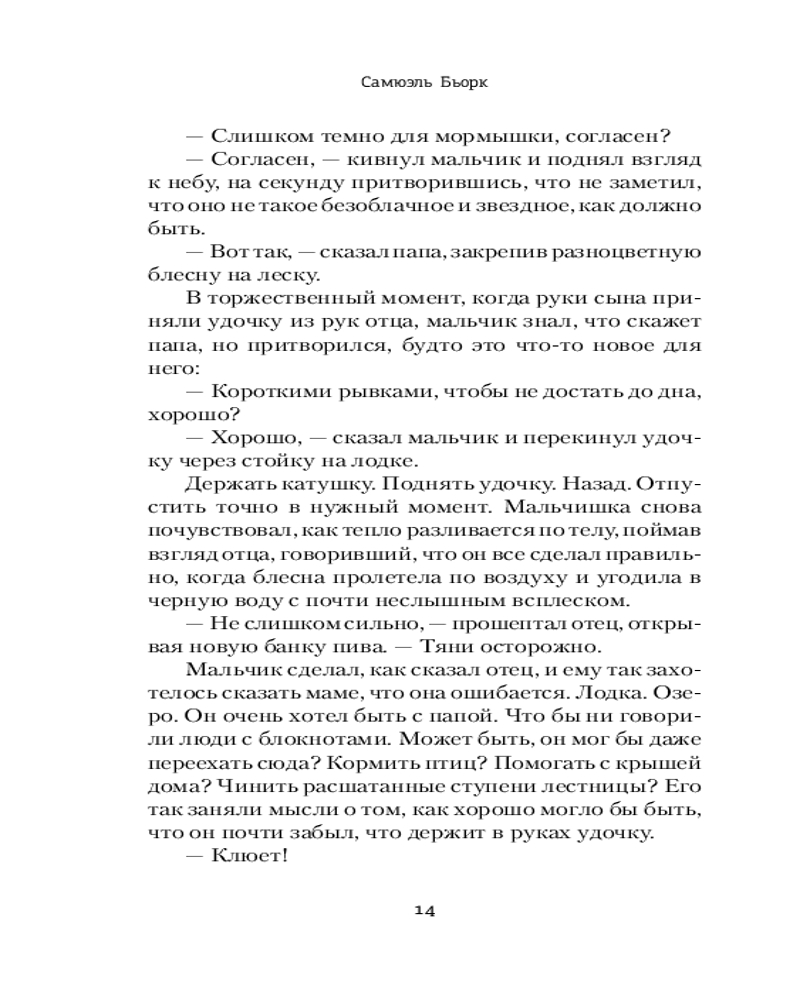 | Под именем Самюэля Бьорка скрывается норвежский писатель, драматург и певец Фруде Сандер Эйен. Он написал первую пьесу в 21 год, за ней последовали две ставших популярными в Норвегии романа. Застенчивый артист-самоучка Эйен также выпустил шесть музыкальных альбомов, написал пять театральных пьес, участвовал в выставках объектов современного искусства и переводил Шекспира. Сейчас он живет в Осло, Норвегия. |