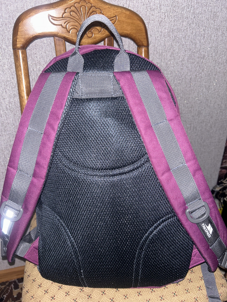 Спинка, вместительность. Не пахнет. Ручка, за которую можно держать рюкзак, крепкая.