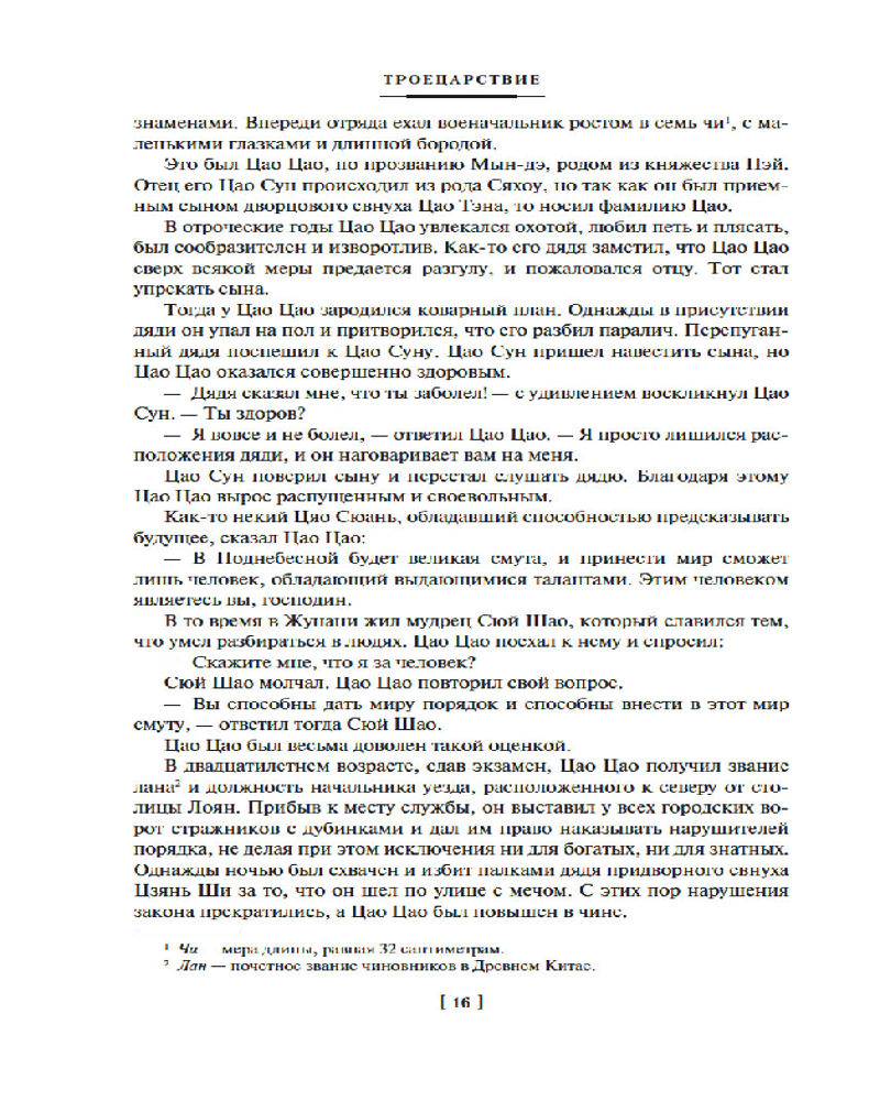 Для кого-то может стать недостатком и тот самый объём материала содержащегося в книге, и сам стиль повествования (всё-таки это произведение конца 15 - начала 16 века), да и если вы до этого ничего не знали про период китайского Троецарствия (которое уже давно вышло за пределы романа, и давно процветает в кино, сериалах, видео и мобильных играх и т.д.), то можно просто очень быстро запутаться в непрерывном потоке событий, интриг, битв, взаимосвязей одних персонажей с другими, имён и названий. «Троецарствие» - это такая азиатская «Игра престолов», но уже для самых взрослых, без каких-либо скидок и на твёрдой исторической основе.