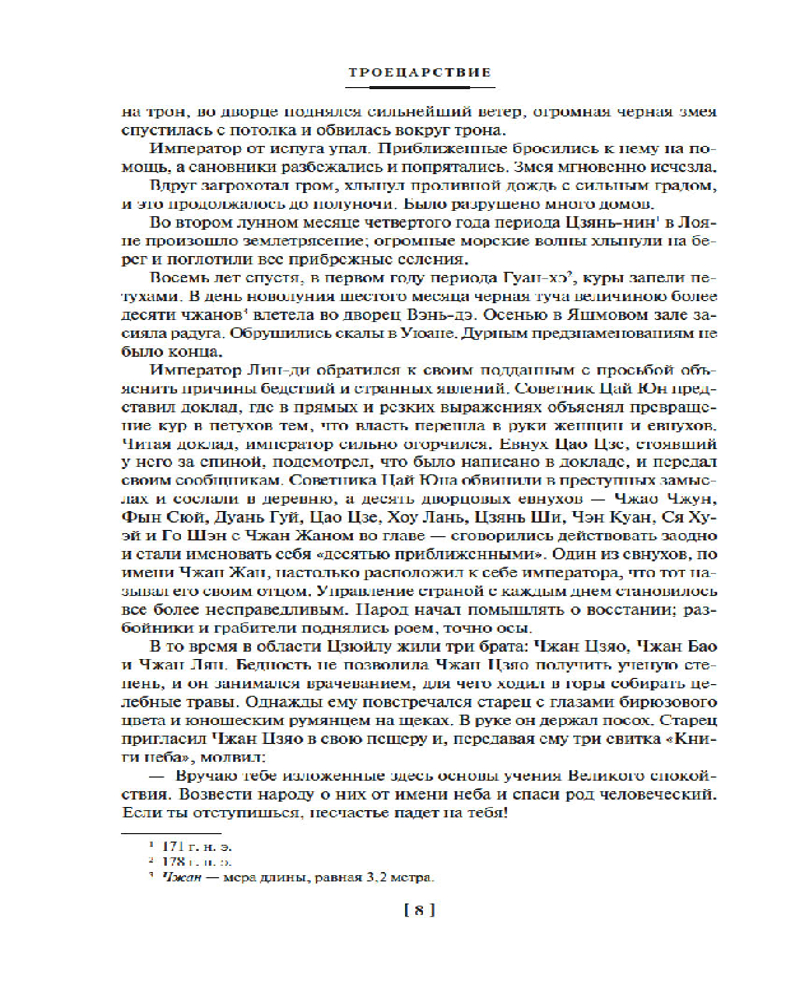 Великий памятник классической китайской литературы. Роман, чей объём на 800 тысяч слов, 120 глав и практически 1500 страниц, которые переполнены всевозможными событиями и историческими персонажами, до сих пор поражает воображение и способен увлечь всякого, кому интересен древний Китай, особенно в период распада династии Хань и установления на её обломках царств Вей, Шу и У. Прекрасное и наиболее полное переиздание (ну, наконец-таки! давно уж назрело) от «Азбуки» с массой сносок и дополнений.