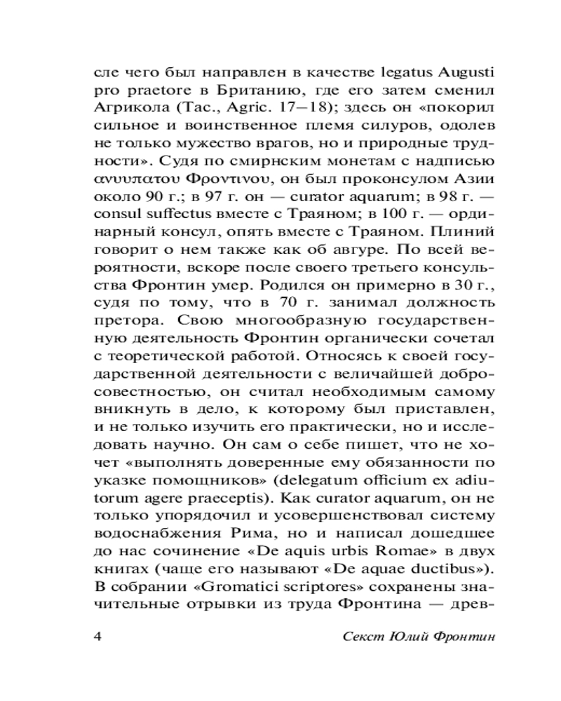 В данный момент этот товар отсутствует в продаже. Возможно, у нас найдется аналогичный или похожий товар здесь. Серия: Эксклюзивная классика Секст Юлий Фронтин (30-103 гг.) — древнеримский политический деятель, полководец, администратор, ученый и писатель. Тацит называл его «великим мужем», Плиний Младший был в числе его друзей, Марциал упоминал о нем в своих эпиграммах, а для военных историков он был безусловным авторитетом.