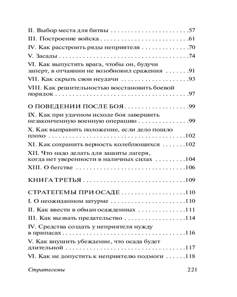 «Стратегемы» представляют собой упорядоченный сборник тактических и психологических приемов, использованных в конкретных случаях древними и современными автору правителями и военачальниками. Причем эти приемы не были обдуманы заранее в ходе стратегического планирования, а были применены из-за внезапно возникших неблагоприятных обстоятельств с целью избежать их или даже обернуть себе на пользу. Недаром второе название книги — «Военные хитрости». |