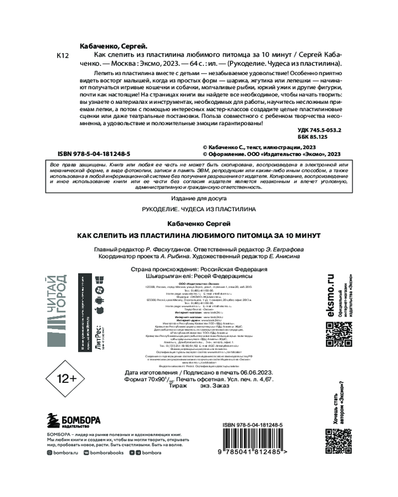 💳 Оплатить за товар можно при получении 🇰🇿 Есть бесплатная доставка по Казахстану от 1 дня 🎁 Копите бонусы с каждой покупки Серия: Рукоделие. Чудеса из пластилина Хотел бы ваш малыш слепить из пластилина любого питомца, которого он захочет? Милых мурчащих котиков, забавных игривых собачек, молчаливых рыбок и медлительных черепашек? Тогда это прекрасное красочное пособие определенно для вас! |