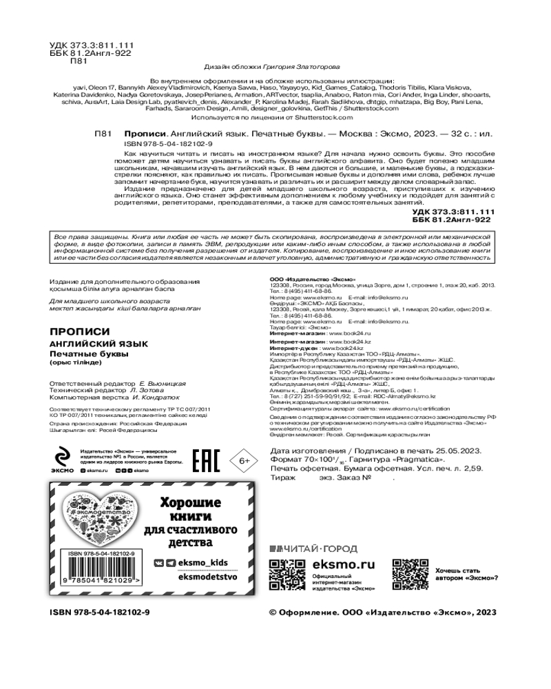 💳 Оплатить за товар можно при получении 🇰🇿 Есть бесплатная доставка по Казахстану 🎁 Копите бонусы с каждой покупки Серия: Английский язык. Первые шаги Для успехов в английском языке ребенку важно освоить английские буквы — научиться их узнавать, различать, писать. С этим пособием он легко решит эту задачу! Огромный плюс прописей — наличие в них и больших, и маленьких букв. Стрелочки-подсказки помогут и ребенку, и взрослому понять, как правильно написать букву, а новые знания можно будет тут же применить на практике. Современные дети не любят однообразных заданий, поэтому, помимо строчек для прописывания, в пособие включены упражнения на использование букв в словах. Это позволяет детям переключаться между заданиями, не теряя концентрации, и дает возможность легко выучить 111 новых слов. |