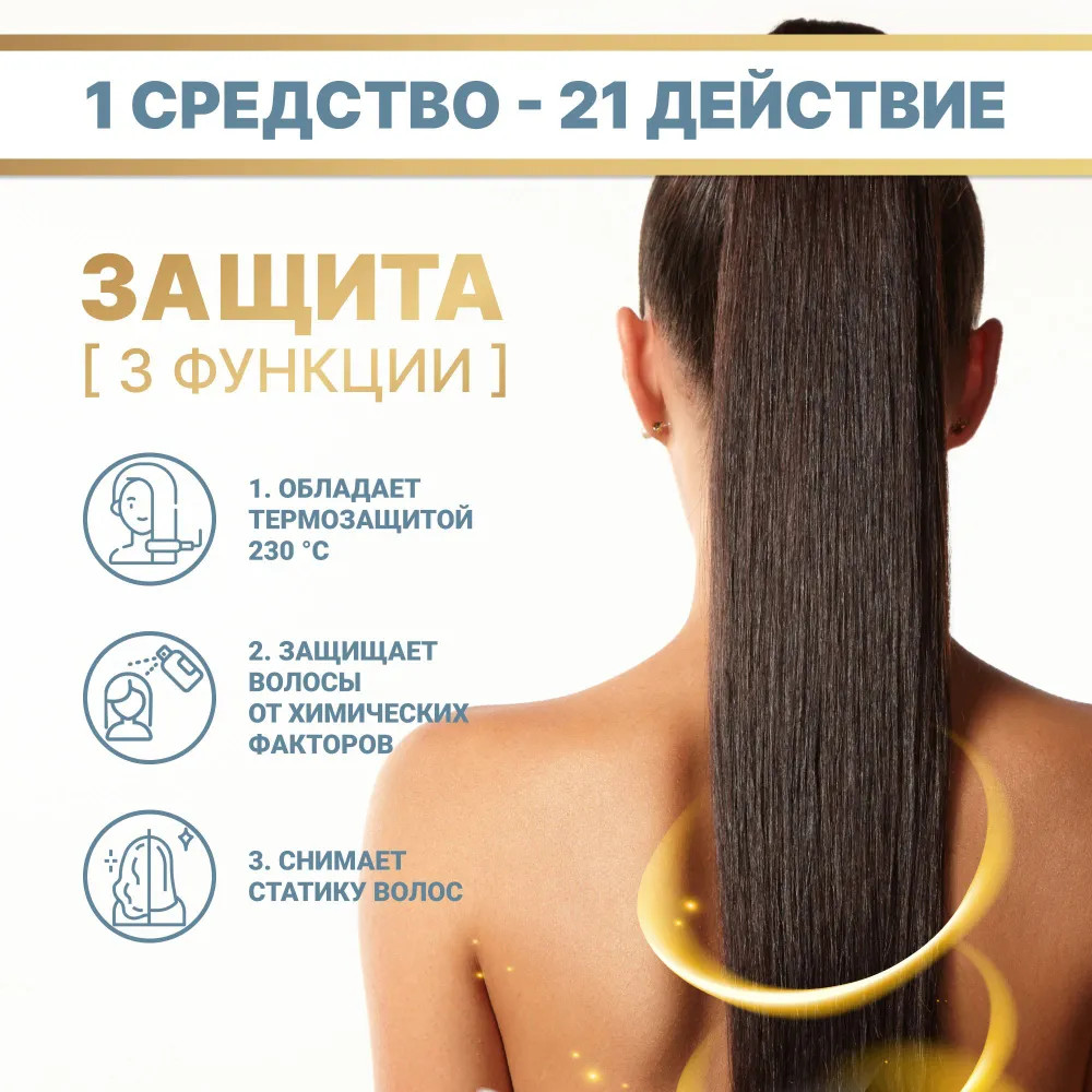 Комплекс, который эффективно оказывает 21 действие одновременно, уникальный многофункциональный продукт, созданный на основе специально разработанного комплекса аминокислот и полимеров. Наш реанимирующий спрей предназначен для женщин и мужчин всех возрастов. Подходит всем видам волос: прямым, сухим, пористым, поврежденным, волнистым, секущимся, ломким, непослушным, кудрявым и пушистым.