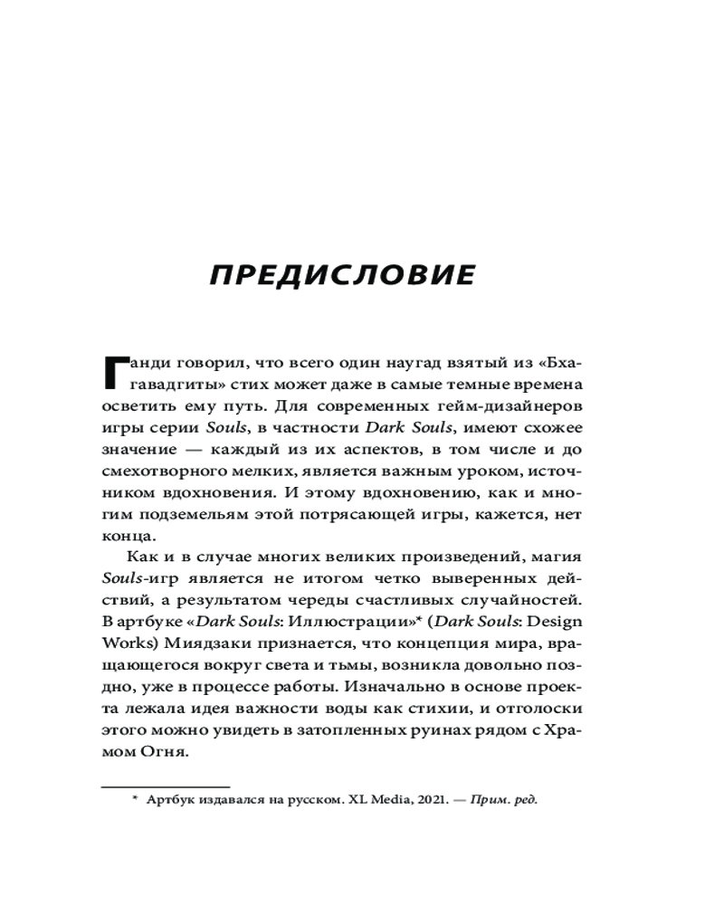 «Эта книга — и сама своего рода Dark Souls от мира книг. Она не объяснит необъятный феномен Dark Souls полностью, но подскажет, в каком направлении думать, подкинет первые веточки для костра. Все самое важное для начала пути здесь есть: за что и как Dark Souls наказывает игроков, о чем говорит, почему так путано, а главное — как Хидэтака Миядзаки все это придумал. Это база, это знать надо». —Денис Майоров, редактор disgustingmen.com |