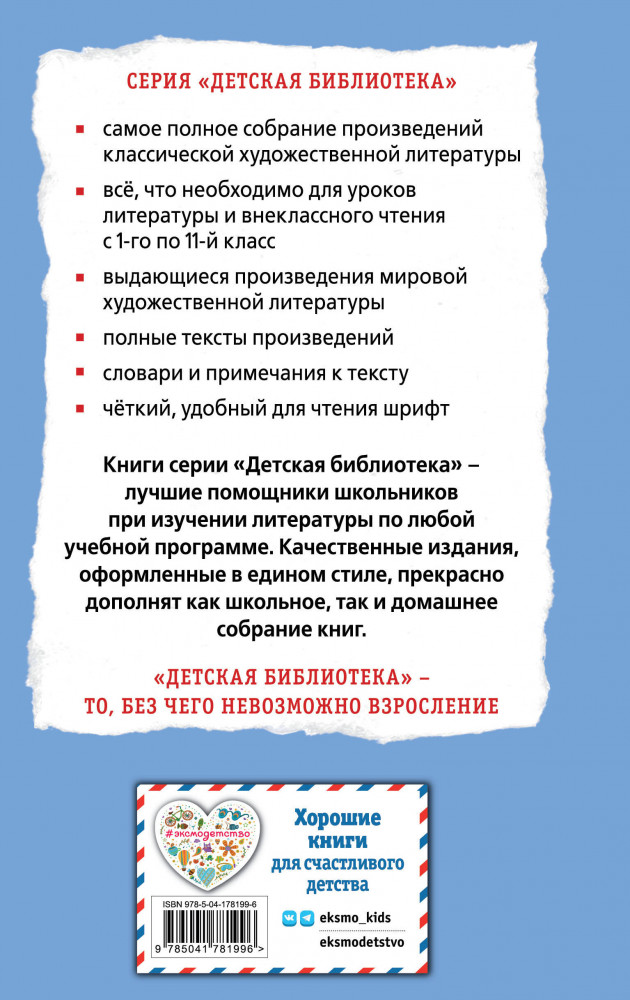 💳 Оплатить за товар можно при получении 🇰🇿 Есть бесплатная доставка по Казахстану от 1 дня 🎁 Копите бонусы с каждой покупки Серия: Детская библиотека (новое оформление) В серии «Детская библиотека» представлены лучшие произведения отечественной и мировой литературы для детей от 5 до 16 лет. Это фольклор и литературные сказки, стихи, рассказы и повести выдающихся писателей-классиков. |