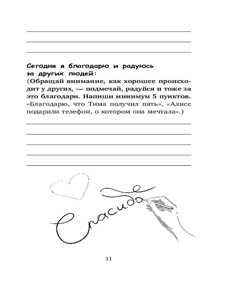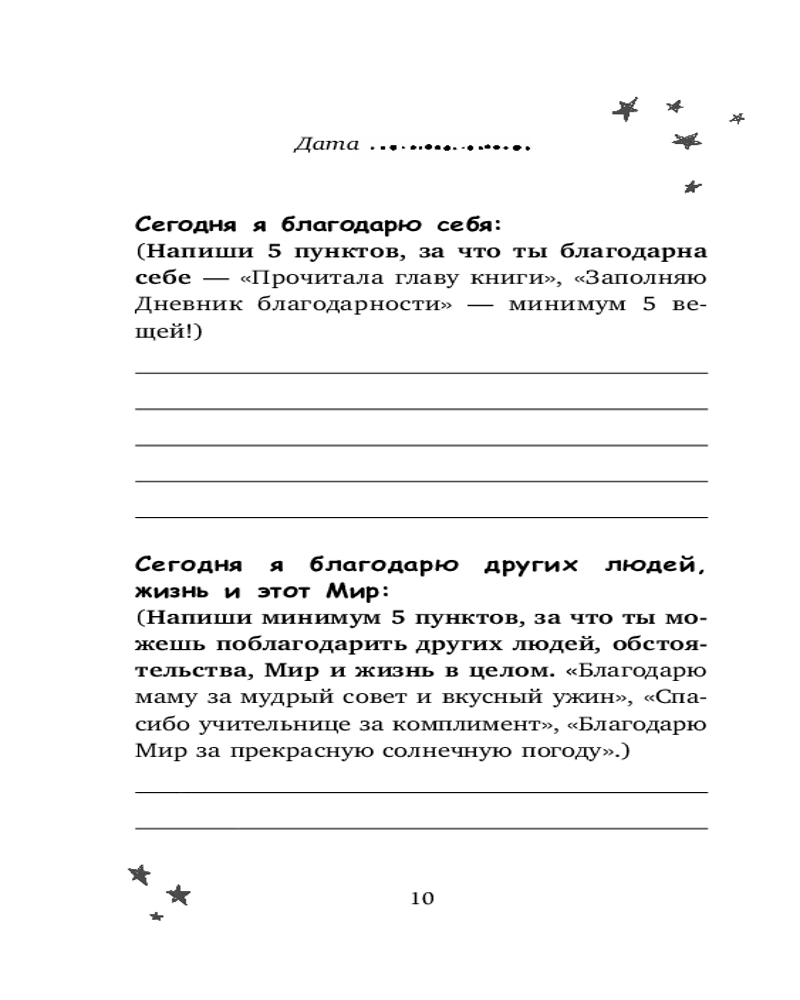 Как развить свой творческий потенциал? Ответ один: «День за днём хвали себя за успехи, отмечай вещи, за которые нужно поблагодарить мир, принимай и осмысляй неудачи и поражения. Так ты незаметно научишься относиться к себе более чутко, поймёшь, чего ты хочешь на самом деле — именно ты! — и как планомерно добиваться выполнения своих желаний». Все это можно практиковать на увлекательных заданиях, тщательно проработанных специалистом по детской психологии, в «Дневнике благодарности и успехов»! Более того, в нем можно не только писать, но и раскрашивать очаровательные чёрно-белые иллюстрации! И конечно, большая роль в этом процессе развития отведена родителям, они несомненно должны оказать поддержку ребенку, чтобы он с самого начала обрел уверенность в себе.
