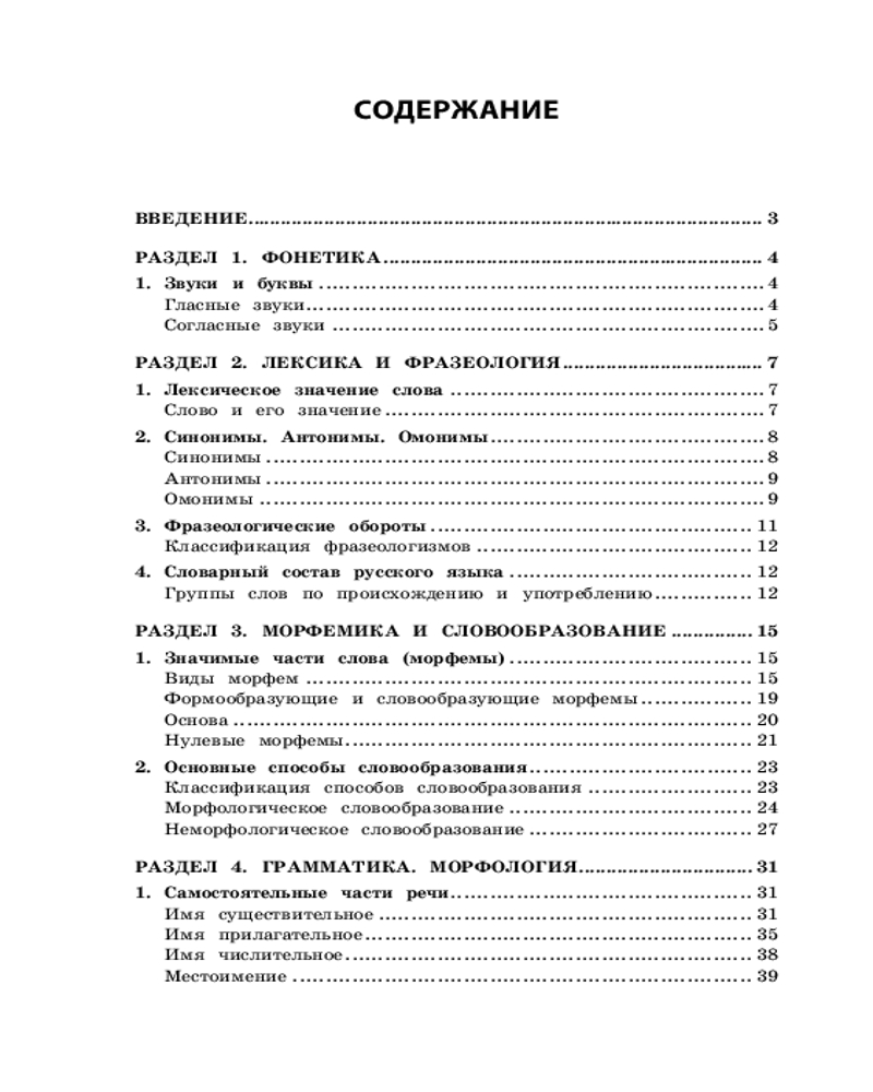 • сведения по фонетике, лексике, синтаксису и морфологии;