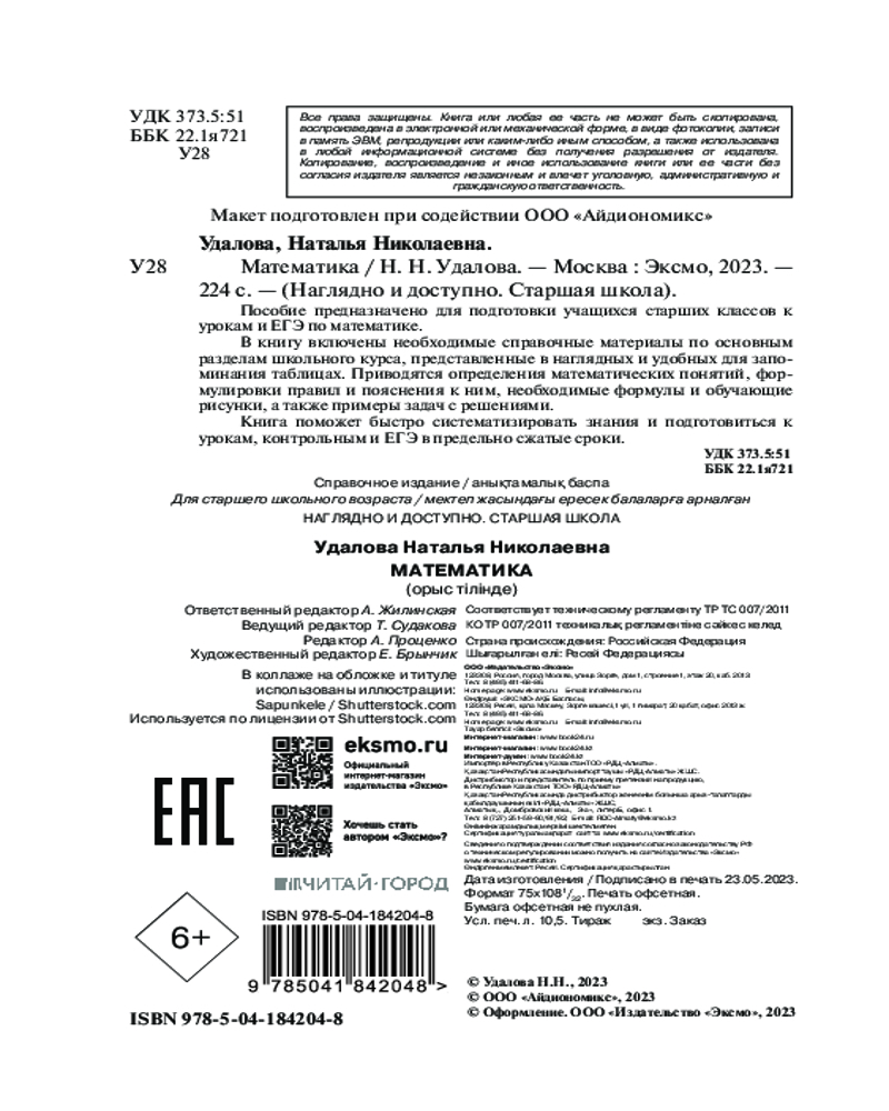 В данный момент этот товар отсутствует в продаже. Возможно, у нас найдется аналогичный или похожий товар здесь. Серия: Наглядно и доступно. Старшая школа В справочнике кратко и доступно изложены основные теоретические сведения по математике за 5-11 классы. Информация систематизирована и сфокусирована на самых важных темах курса, знание которых проверяется экзаменом.