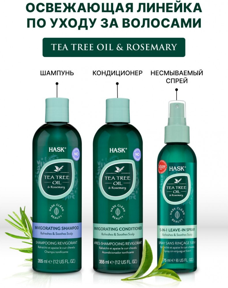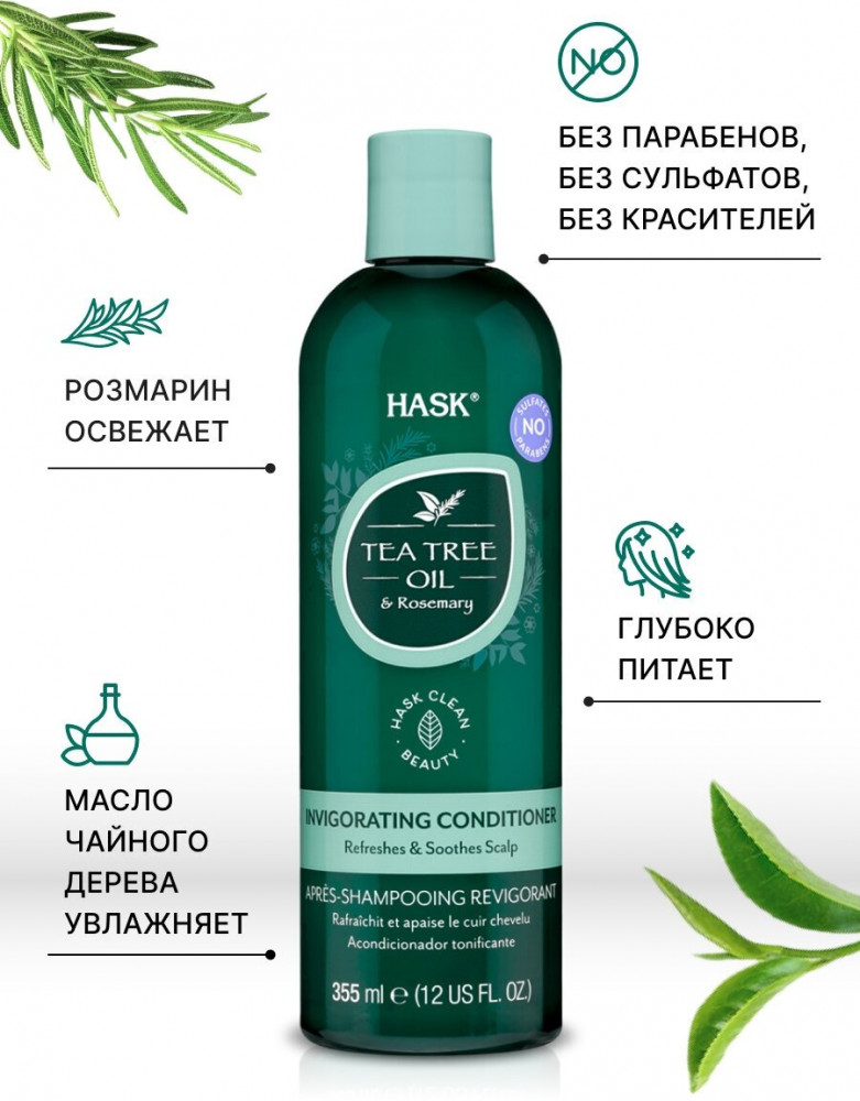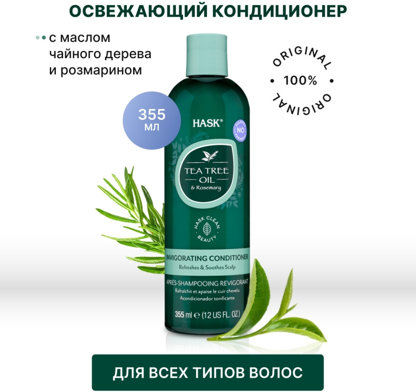 Hask Кондиционер для волос с маслом чайного дерева и экстрактом розмарина+88 мятный запах мягкость волос управляемость волос густая консистенция