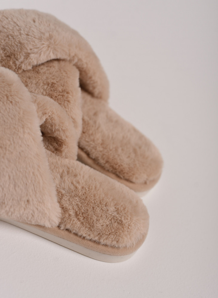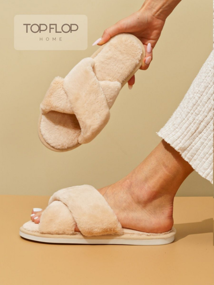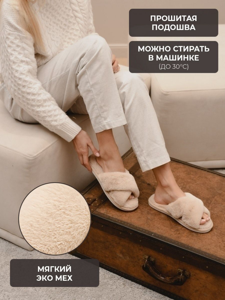 Уютные меховые тапочки с двумя перекрестными ремешками — это лучший вариант домашней обуви на каждый день. Тапочки с открытым носом выполнены из искусственного меха, в их производстве не использовался мех животных. Тапки оснащены противоскользящей подошвой из ПВХ и удобной стелькой с массажным эффектом. Это способствует снятию усталости и делает их такими же удобными, как ортопедическая обувь. Такая модель легких тапок подарит комфорт вашим гостям и дома, и на даче. Красивые тапочки дополнят наряд подружки невесты на пижамной вечеринке. Милые тапочки продаются в 6 нюдовых цветах, имеют большую сетку размеров и подходят на широкую ногу.