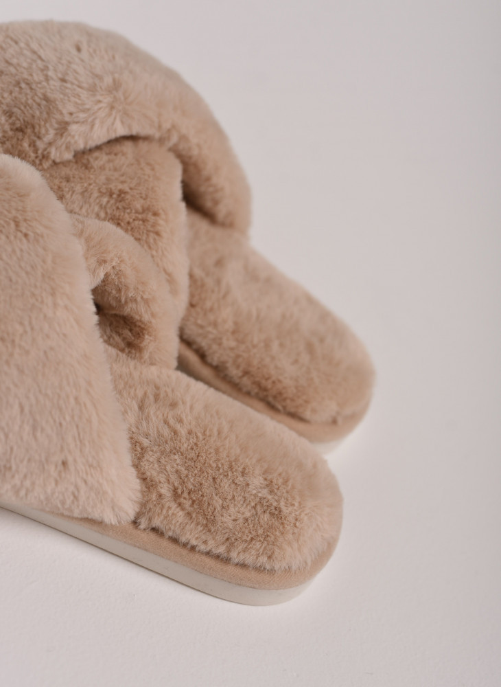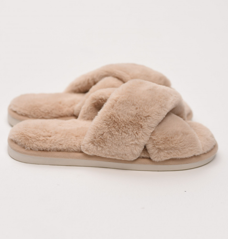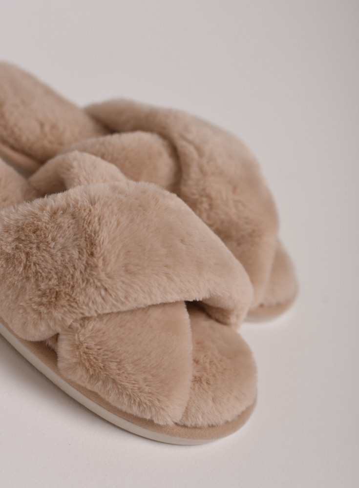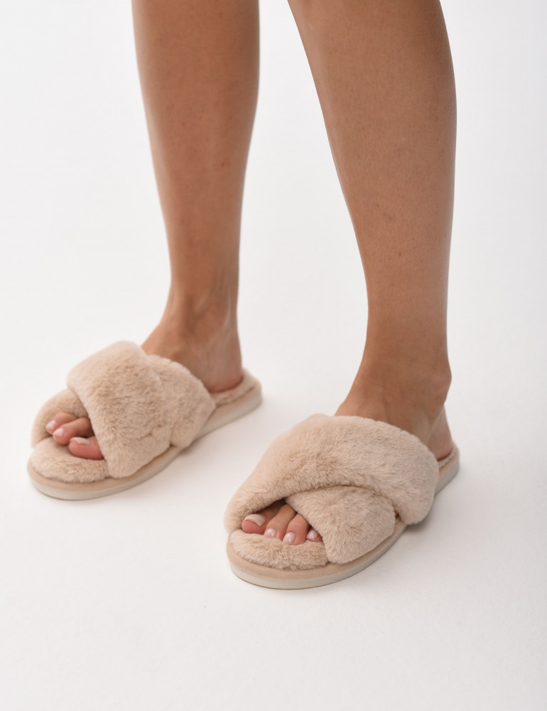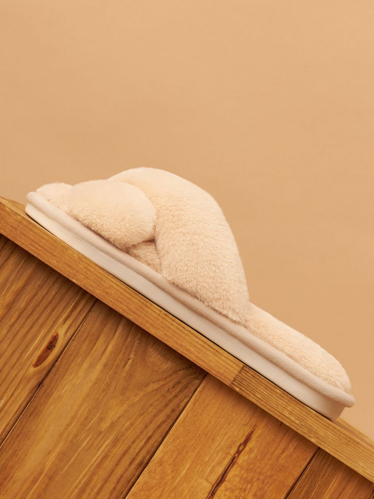 Уютные меховые тапочки с двумя перекрестными ремешками — это лучший вариант домашней обуви на каждый день. Тапочки с открытым носом выполнены из искусственного меха, в их производстве не использовался мех животных. Тапки оснащены противоскользящей подошвой из ПВХ и удобной стелькой с массажным эффектом. Это способствует снятию усталости и делает их такими же удобными, как ортопедическая обувь. Такая модель легких тапок подарит комфорт вашим гостям и дома, и на даче. Красивые тапочки дополнят наряд подружки невесты на пижамной вечеринке. Милые тапочки продаются в 6 нюдовых цветах, имеют большую сетку размеров и подходят на широкую ногу.