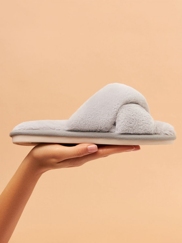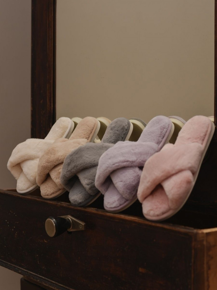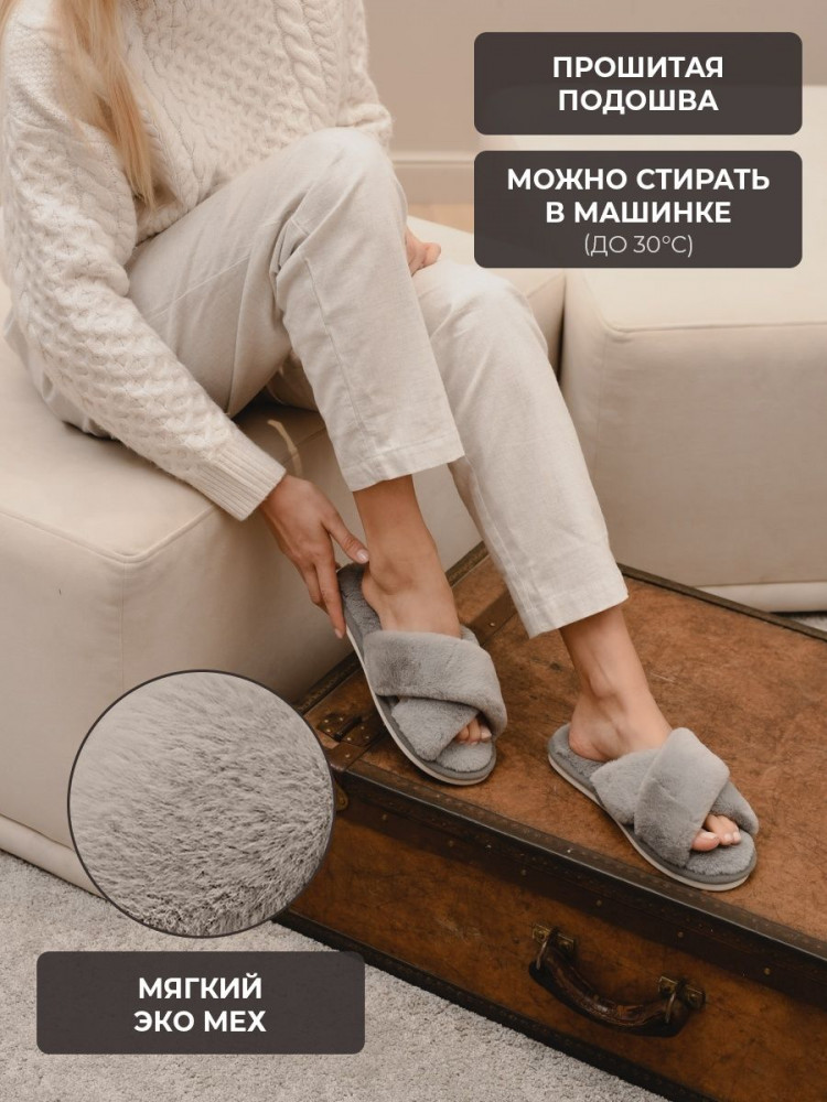 Уютные меховые тапочки с двумя перекрестными ремешками — это лучший вариант домашней обуви на каждый день. Тапочки с открытым носом выполнены из искусственного меха, в их производстве не использовался мех животных. Тапки оснащены противоскользящей подошвой из ПВХ и удобной стелькой с массажным эффектом. Это способствует снятию усталости и делает их такими же удобными, как ортопедическая обувь. Такая модель легких тапок подарит комфорт вашим гостям и дома, и на даче. Красивые тапочки дополнят наряд подружки невесты на пижамной вечеринке. Милые тапочки продаются в 6 нюдовых цветах, имеют большую сетку размеров и подходят на широкую ногу.