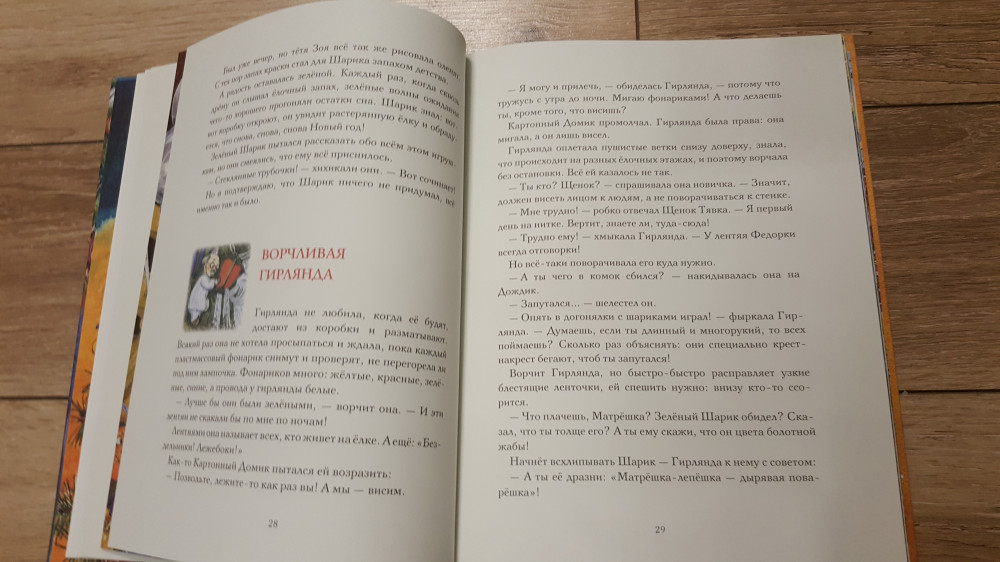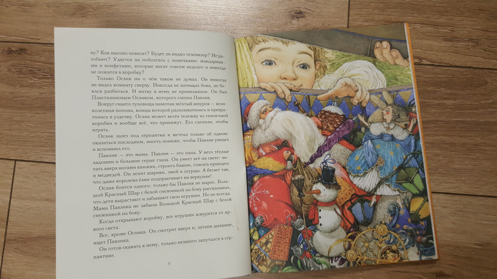 Книга действительно пропитана Новым годом ведь идет рассказ о новогодних игрушках, которые лежать в коробке и ждут, когда их повесят на ёлку. В книге отдельные рассказы об определенной игрушке. Читать интересно, так как каждый герой имеет свой характер, привычки и историю. В общем, рекомендую в качестве зимней книги. Покупала для ребенка 3,5 года, но очень длинные рассказы - укорачивала.