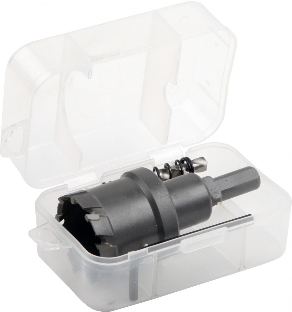 Коронка по металлу предназначена для дрелей и стационарных станков. Применяется для сверления стали, легированной стали, нержавеющей стали, меди, алюминия, пластика и сэндвич-панелей. Коронка имеет твердосплавные режущие сегменты. В комплекте поставляется центрирующее сверло из быстрорежущей стали и толкающая пружина, препятствующая застреванию материала внутри заготовки. Поставляется в пластиковом тубусе.