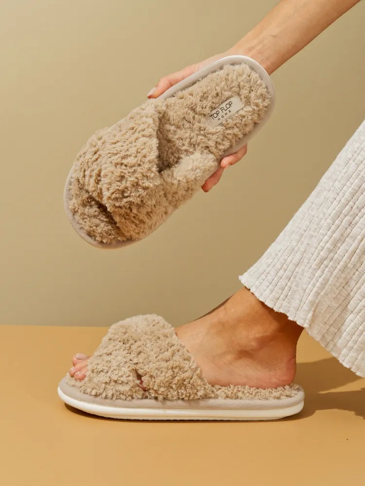 Уютные меховые тапочки с двумя перекрестными ремешками — это лучший вариант домашней обуви на каждый день. Тапочки с открытым носом выполнены из искусственного меха, в их производстве не использовался мех животных. Тапки оснащены противоскользящей подошвой из ПВХ и удобной стелькой с массажным эффектом. Это способствует снятию усталости и делает их такими же удобными, как ортопедическая обувь. Такая модель легких тапок подарит комфорт вашим гостям и дома, и на даче. Красивые тапочки дополнят наряд подружки невесты на пижамной вечеринке. Милые тапочки продаются в 6 нюдовых цветах, имеют большую сетку размеров и подходят на широкую ногу.