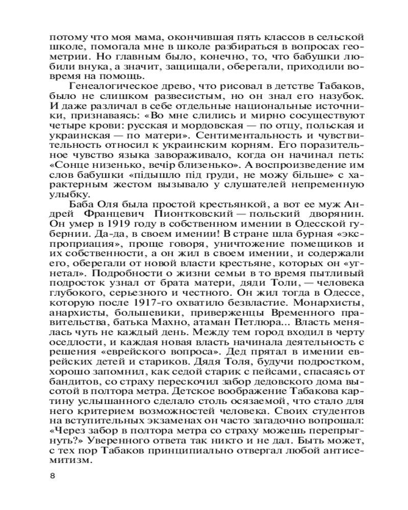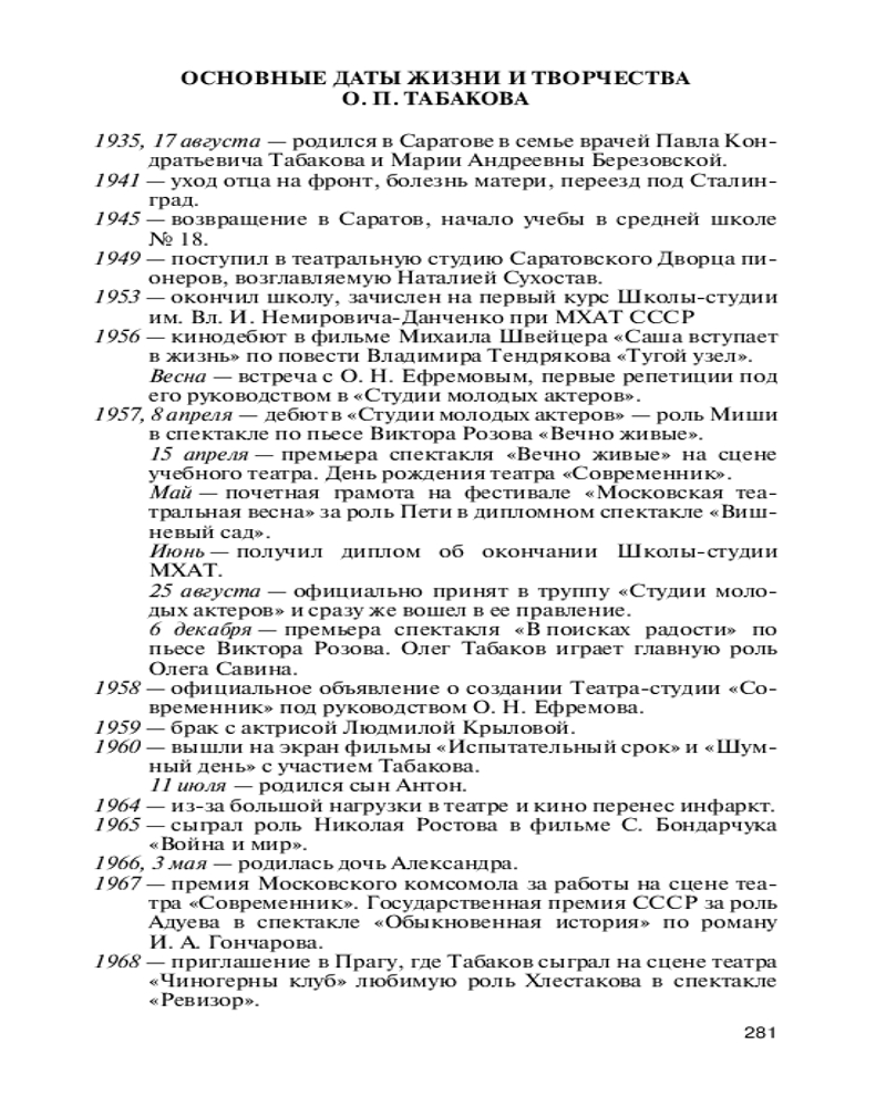 Олег Павлович Табаков (1935-2018) создал в театре и кино целую галерею ярких и запоминающихся образов, любимых, без преувеличения, всеми зрителями нашей страны. Не менее важной для российской культуры была его работа на посту руководителя таких знаменитых театров, как МХАТ-МХТ им. А. П. Чехова, «Современник» и созданный им театр-студия «Табакерка». Актер и режиссер, педагог и общественный деятель, Табаков был также блестящим рассказчиком, автором нескольких книг, мудрым и тонко чувствующим мастером своего дела. |