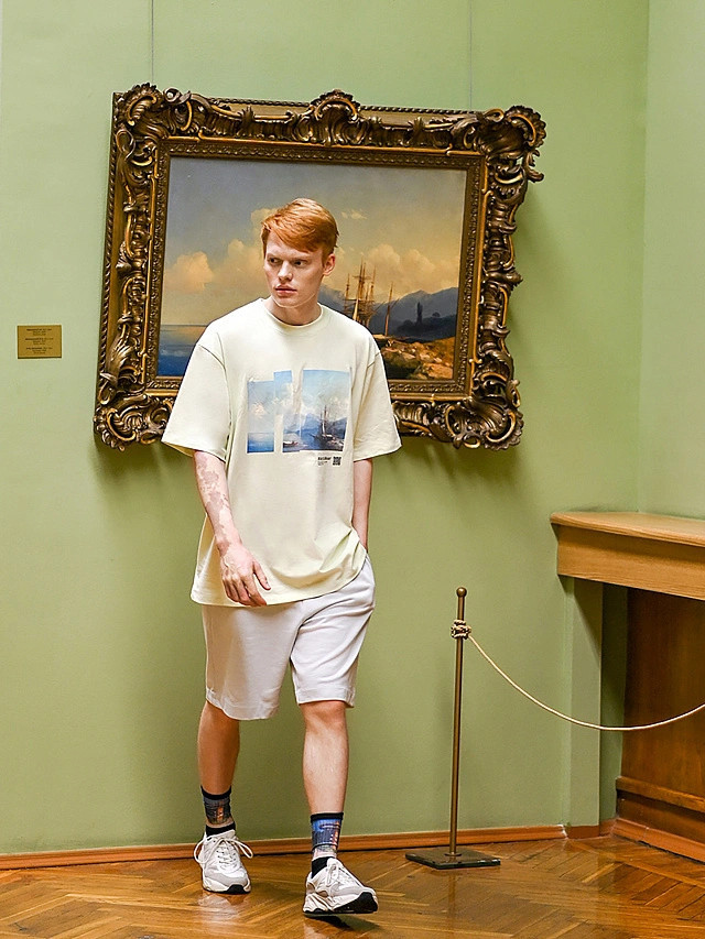 На мой рост 182 см и 54 размер футболка сидит также, как на модели на фото, т.е., она свободного кроя.
