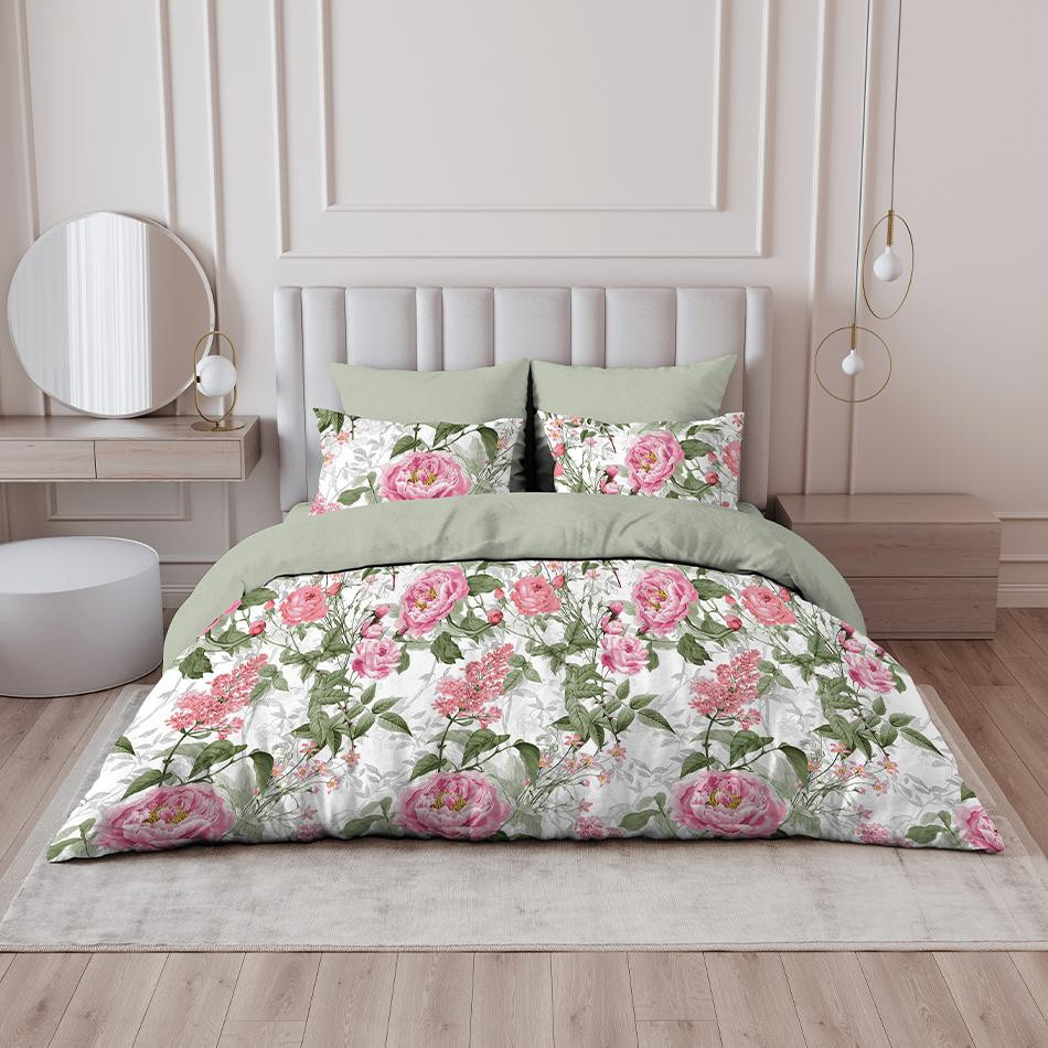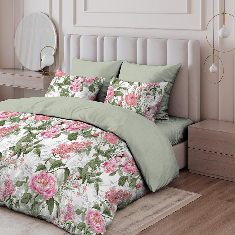 Красивое бельё, соответствует фото. Простынь и наволочки однотонные, спокойной расцветки, пододеяльник, как на фото