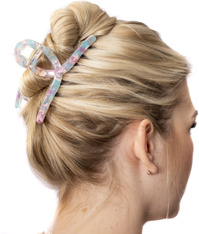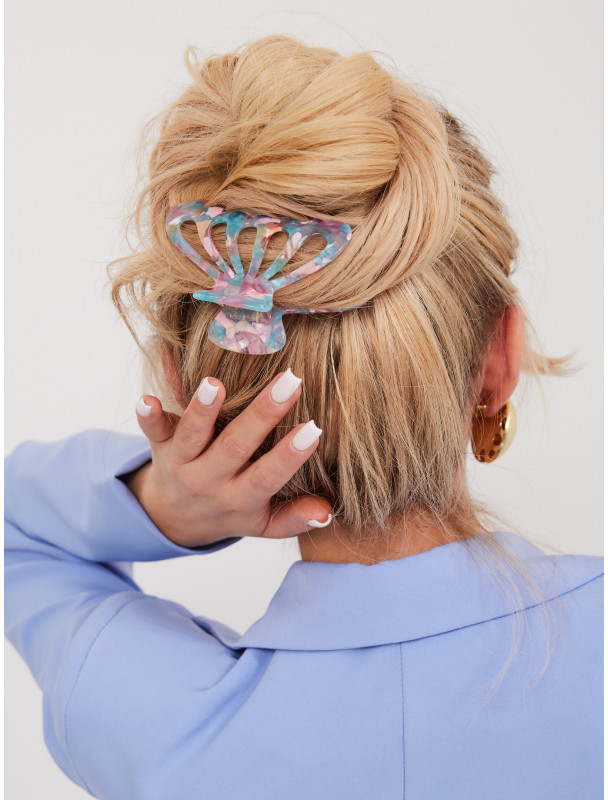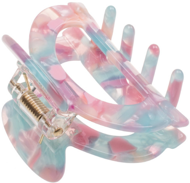 Заколки выполнены из качественного глянцевого ацетата в нежно розово-голубом цвете, с имитацией под мрамор. Несмотря на видимую хрупкость аксессуар из такого материала не разобьется при падении. Ацетат значительно прочнее пластика. Цвет и рисунок не выгорают и не стираются.