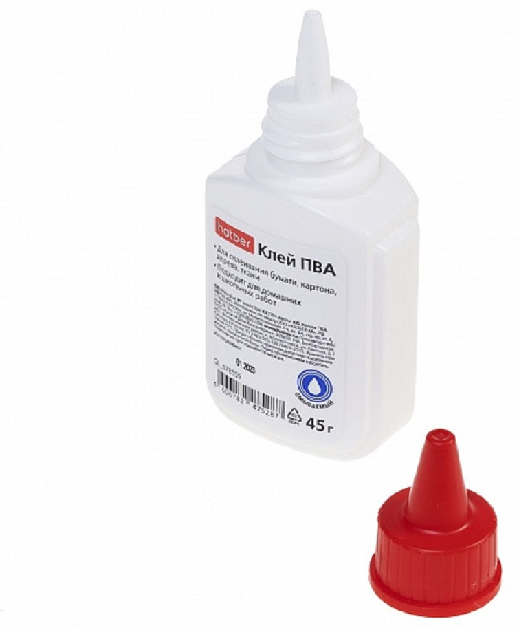 Hatber Клей ПВАВ данный момент этот товар отсутствует в продаже. Возможно, у нас найдется аналогичный или похожий товар здесь. Клей ПВА отлично склеивает картон и бумагу, дерево, ткань и кожу. Подходит для использования в офисе, дома и в школе на уроках труда. Клей безопасен при использовании: не содержит растворителей, не оставляет следов и легко смывается водой. Подходит для детей старше 3-х лет. Он экономично расходуется благодаря дозатору, который обеспечивает точное нанесения клея на склеиваемые поверхности. Также клей устойчив к резким перепадам температур, выдерживает многократные замораживания и размораживания, сохраняя при этом потребительские свойства и однородность текстуры. Хранить при температуре выше +5 С. |