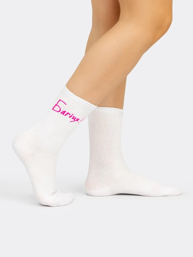 Чудесные носочки, яркие, с прикольной надписью. Обожаю такие. Покупала похожие много раз, нОские, не скатываются, не линяют. Комфортны к телу, резинка высокая, не тугая.
