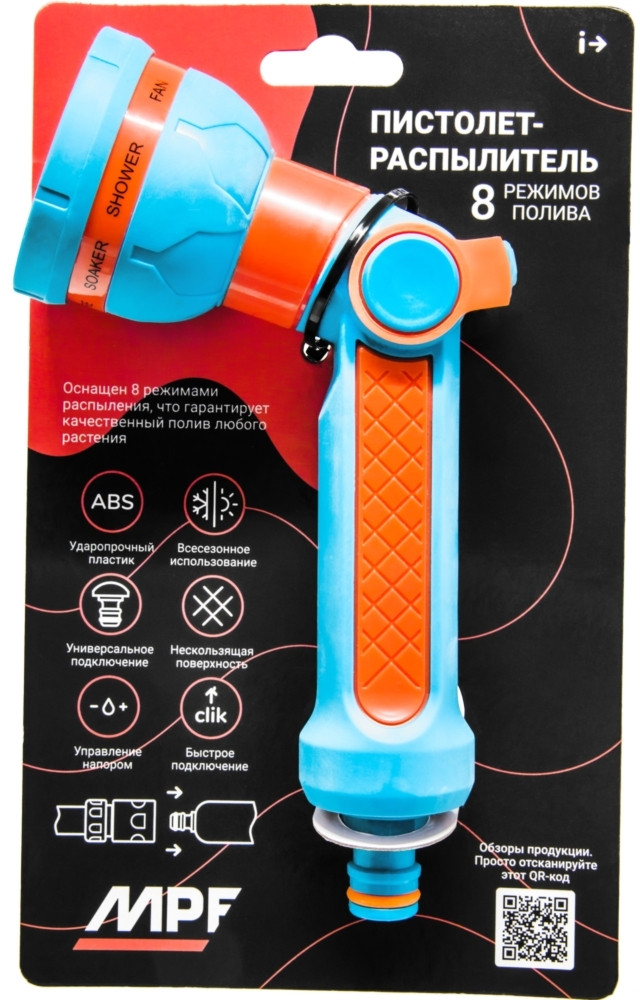 MasterProf Пистолет-распылитель под коннекторВ данный момент этот товар отсутствует в продаже. Возможно, у нас найдется аналогичный или похожий товар здесь. Пистолет-распылитель применяется для полива растений на садовом участке. Расположенный сзади рукоятки курок позволяет управлять напором воды (от струи до тумана). Данный механизм освобождает руку и избавляет от постоянной необходимости давить на курок. Для качественного полива любого растения оснащен 8 режимами распыления: туман, душ, мягкий душ, плоская струя, слабая струя, жесткая струя, мягкий конус, конус. |