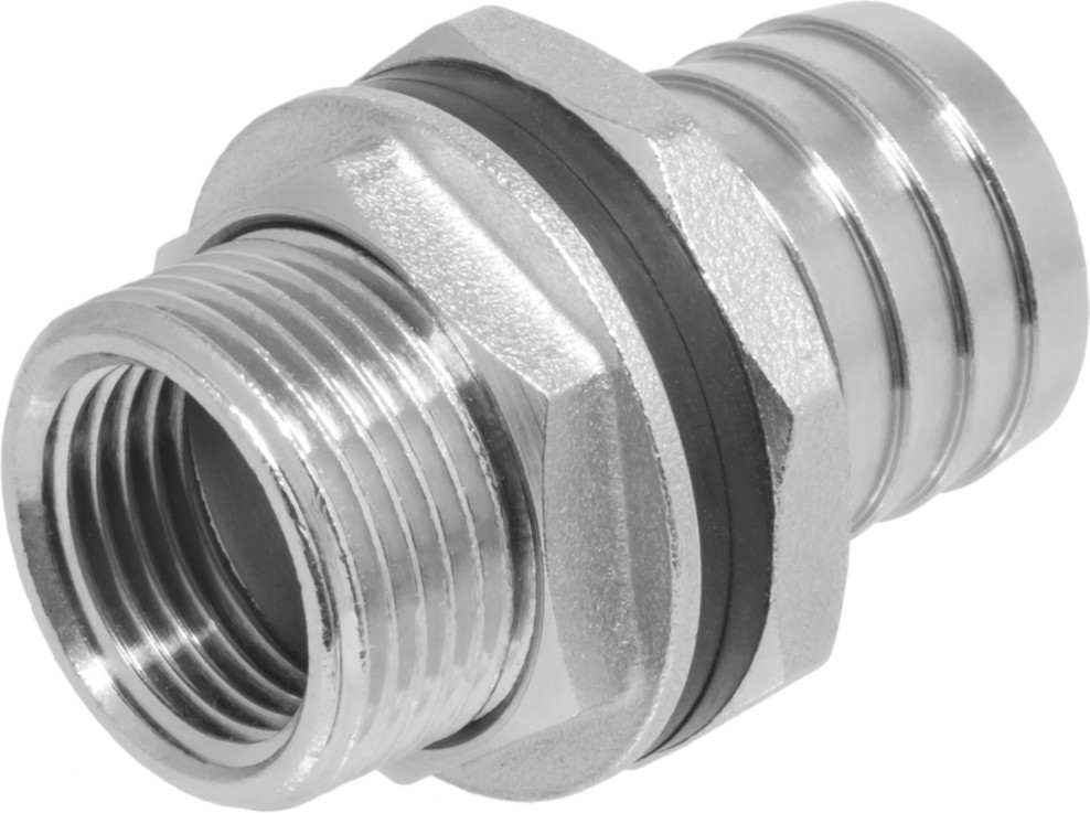Штуцер предназначен для присоединения труб водоснабжения к емкости. Наружная резьба 3/4″, внутренняя 1/2″. Состоит из штуцера, 2 прокладок и прижимной гайки. Изготовлен из латунного сплава. |