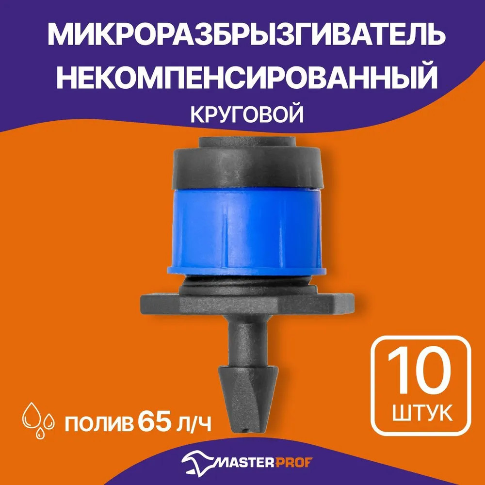 MasterProf Микроразбрызгиватель некомпенсированный для систем капельного поливаВ данный момент этот товар отсутствует в продаже. Возможно, у нас найдется аналогичный или похожий товар здесь. Микроразбрызгиватель используется для кругового полива растений. Круговой полив позволяет контролировать расход воды при поливе за счет ускорения или замедления процесса орошения. Обеспечивает стабильный дозированный расход влаги. Рабочее давление: от 0,5 до 3,0 атм. Производительность: 80 л/ч. Имеет круговую форму орошения. |