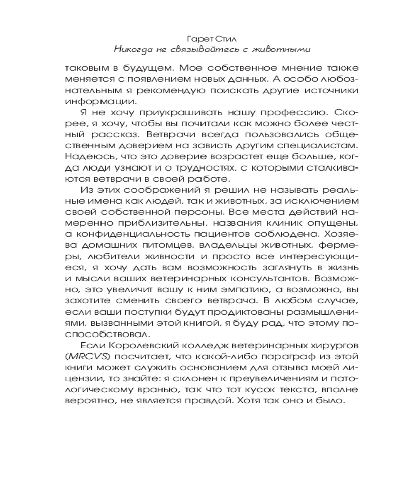 Серия: DUM SPIRO SPERO Гарет Стил работает с животными более двадцати лет. Он — ветеринар, которому приходилось иметь дело со всеми видами домашних любимцев: не только с хомячками, кошками и собаками, но и с курицами, коровами и лошадьми. Его день мог начаться с героического спасения кролика, застрявшего между забором и сараем, и закончиться усыплением кота, чьи владельцы больше не в силах его содержать. Радость, восторг, благодарность, разочарование, гнев, бессилие — весь спектр эмоций, порой и экстремальных, испытывают люди, работающие в ветклиниках.  |