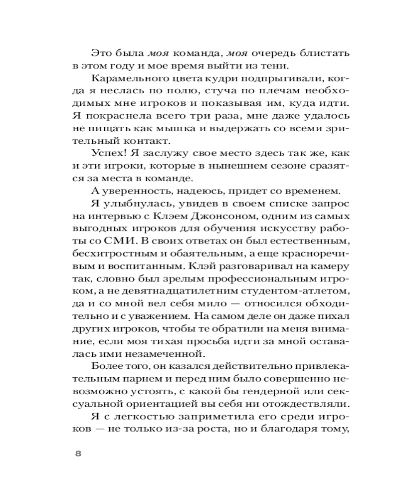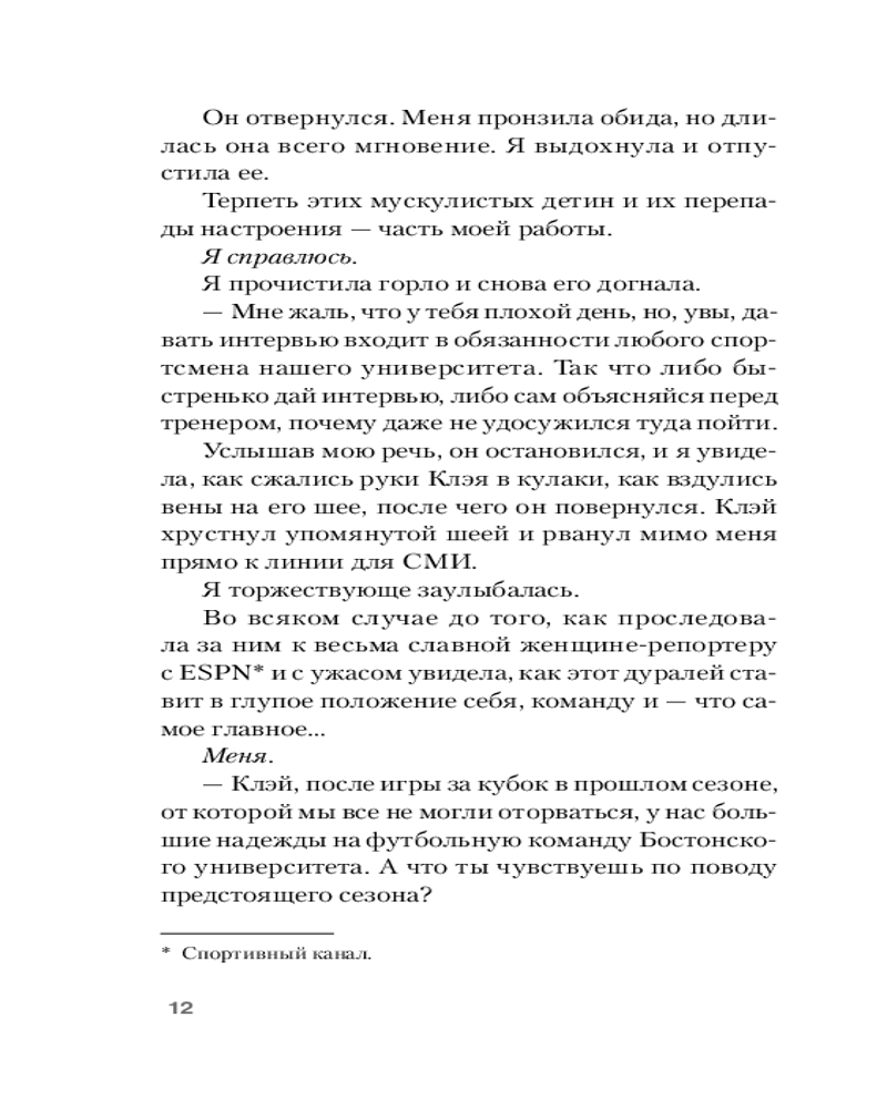 У Клэя Джонсона пресс Аполлона и улыбка самого дьявола. Не проходит и дня, чтобы его имя не появилось в заголовках газет, а сам он не обратил на себя внимание новой девушки в кампусе. Раньше мне, как координатору по связям с общественностью, было легко с ним общаться, но после неприятного