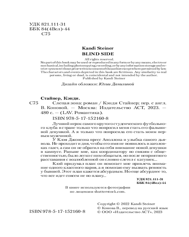 плотная бумага легкость чтения качество печати В данный момент этот товар отсутствует в продаже. Возможно, у нас найдется аналогичный или похожий товар здесь. Серия: LAV. Романтика Лучший игрок самого крутого студенческого футбольного клуба в стране только что попросил меня стать его фальшивой девушкой. А я только что попросила его стать моим первым мужчиной.
