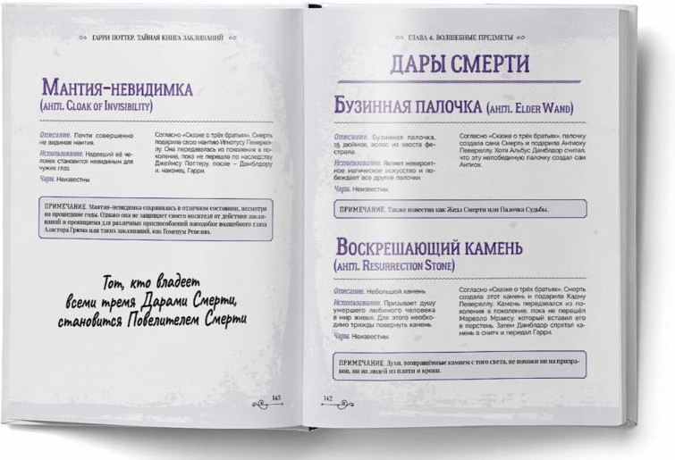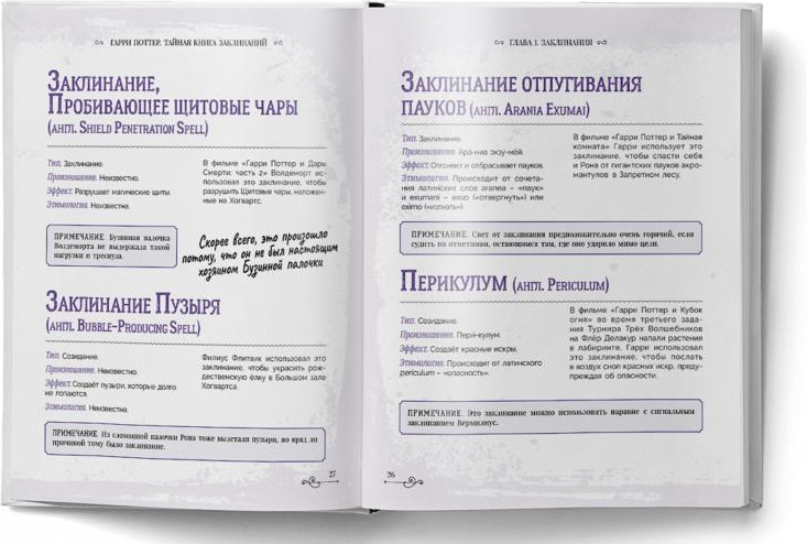Гарри Поттер. Книга заклинанийВ данный момент этот товар отсутствует в продаже. Возможно, у нас найдется аналогичный или похожий товар здесь. Серия: Библиотека магии Полное собрание волшебных заклятий, чар, проклятий, сглазов и порч по вселенной Гарри Поттера включает в себя все заклинания, упомянутых в книгах, фильмах, видео-играх и на других ресурсах, посвященных Мальчику- Который- Выжил. На основе детального и глубокого анализа и многолетних изысканий было собрано более 240 заклинаний, которые вошли в этот справочник. Произношение и этимология заклинания, ситуации, когда оно использовалось, места, где упоминалось, схемы движений палочкой и многое другое — в этой невероятной книге. А на полях найдутся полезные заметки для начинающей ведьмы или волшебника. |