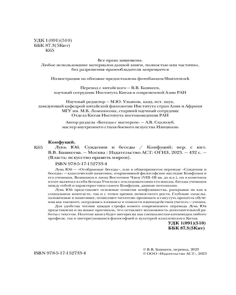 💳 Оплатить за товар можно при получении 🇰🇿 Есть бесплатная доставка по Казахстану от 1 дня 🎁 Копите бонусы с каждой покупки Серия: Власть: искусство править миром Лунь Юй — «Отобранные беседы», или в общепринятом переводе «Суждения и беседы» — классический памятник, сохранивший философское наследие Конфуция и его учеников. Возникнув в эпоху Восточное Чжоу (VIII–III вв. до н.э.), он в конечном итоге включил в себя беседы Учителя с последователями его школы, беседы учеников между собой и характеристики самого Конфуция, данные потомками. |