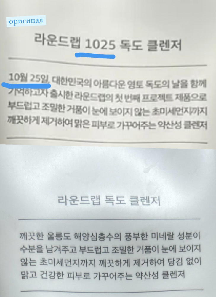 подделка по цене оригинала. изначально было доверие к сайту, тем более цена была такая же как если бы заказывали с официального сайта (что и сделали с др.товарами) но для сокращения ожидания быстро расходуемые легче было заказать здесь. В итоге получили явный Китай. Во первых, qr-код на оригиналах его нет, но даже с условием перехода по нему - он ведет на левый сайт “подтверждения с бестселлерами“ и соотв. кит. иероглифами. Во вторых, китайские иероглифы присутствуют на самой упаковке. Изначально их не заметила. но сегодня приглянулась и только подтвердила подозрения. В третьих и основных, данная линейка продукции основывается на морской воде с острова Докдо, поэтому важное обозначение имеет 1025 (10 октября) день посвященный докдо и празднуемый в ЮК. это упоминается на упаковке оригинала. в подделке же упустили это момент. (сравнение фото прилагается)