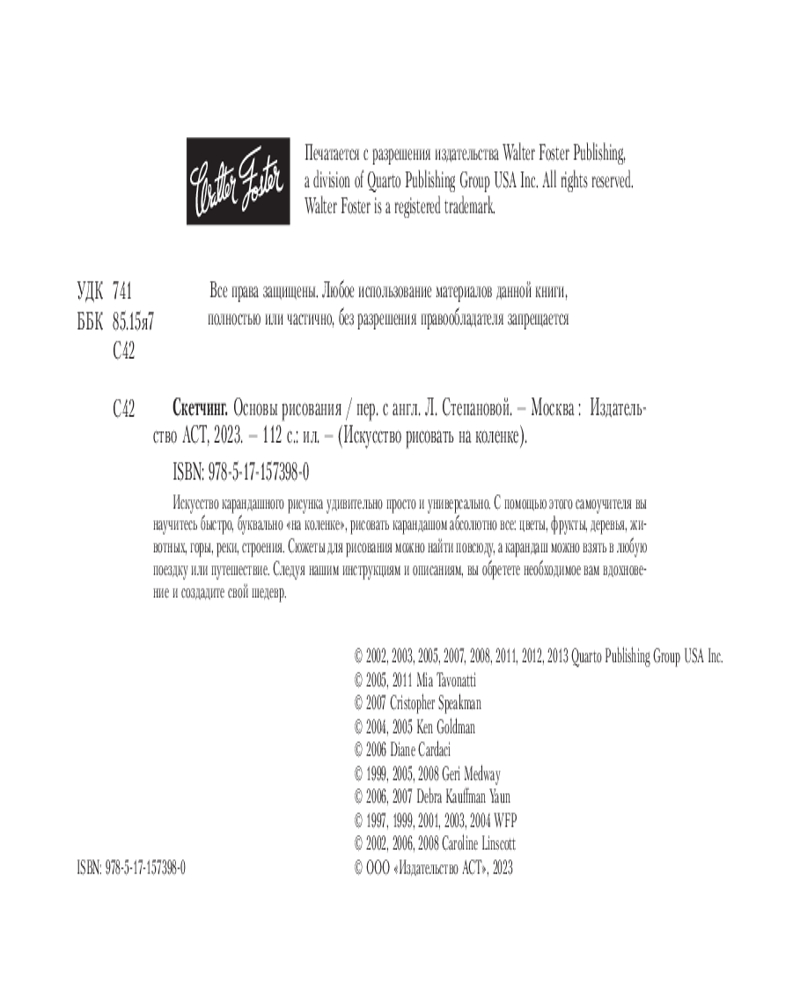 💳 Оплатить за товар можно при получении 🇰🇿 Есть бесплатная доставка по Казахстану от 1 дня 🎁 Копите бонусы с каждой покупки Серия: Искусство рисовать на коленке Искусство карандашного рисунка удивительно просто и универсально. С помощью этого самоучителя вы научитесь быстро, буквально «на коленке», рисовать карандашом абсолютно все: цветы, фрукты, деревья, животных, горы, реки, строения. Сюжеты для рисования можно найти повсюду, а карандаш можно взять в любую поездку или путешествие. Следуя нашим инструкциям и описаниям, вы обретете необходимое вам вдохновение и создадите свой шедевр. |