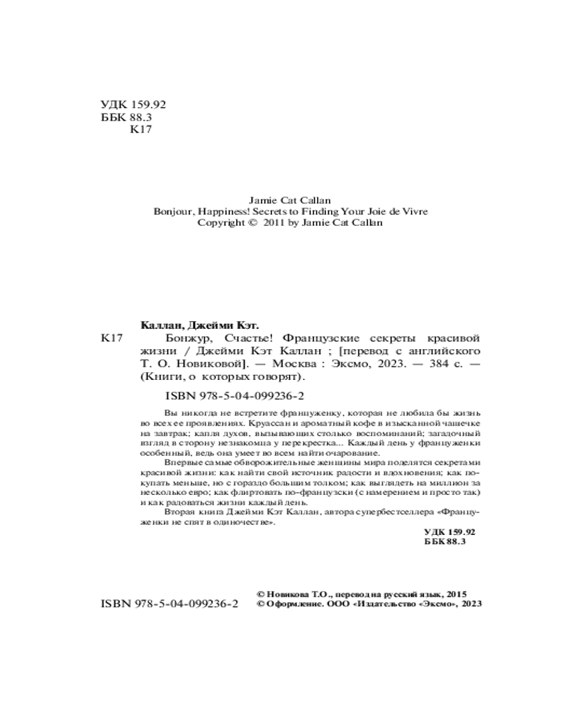 💳 Оплатить за товар можно при получении 🇰🇿 Есть бесплатная доставка по Казахстану от 1 дня 🎁 Копите бонусы с каждой покупки Серия: Книги, о которых говорят Вы никогда не встретите француженку, которая не любила бы жизнь во всех ее проявлениях. Круассан и ароматный кофе в изысканной чашечке на завтрак; капля духов, вызывающих столько воспоминаний; загадочный взгляд в сторону незнакомца у перекрестка... Каждый день у француженки особенный, ведь она умеет во всем найти очарование. |