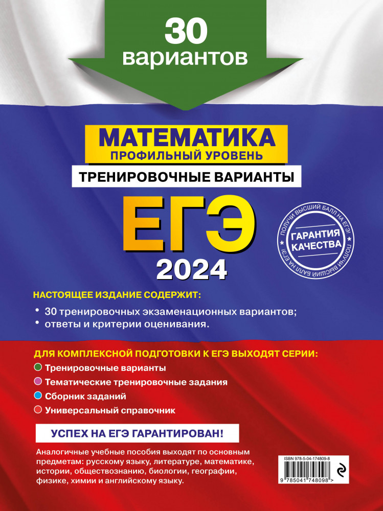 ЕГЭ-2024. Математика. Профильный уровень. Тренировочные варианты. 30 вариантовВ данный момент этот товар отсутствует в продаже. Возможно, у нас найдется аналогичный или похожий товар здесь. Серия: ЕГЭ. Тренировочные варианты (обложка) Издание адресовано учащимся старших классов и направлено на подготовку к ЕГЭ по математике профильного уровня. |