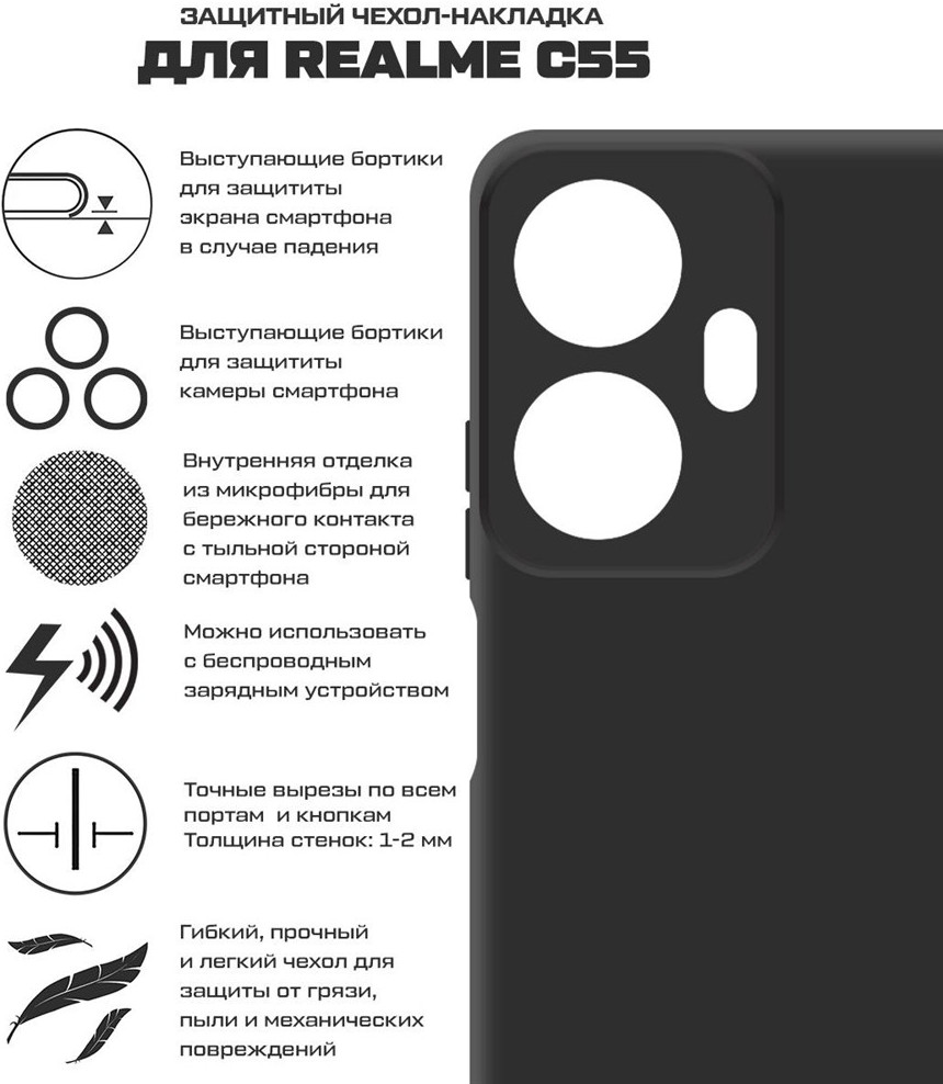 Чехол-накладку можно легко установить на ваш смартфон, так как он имеет все необходимые вырезы и отверстия для доступа к камере, кнопкам и другим элементам управления. Он также имеет приятную на ощупь текстуру, которая делает его удобным в использовании и не скользит в руках.