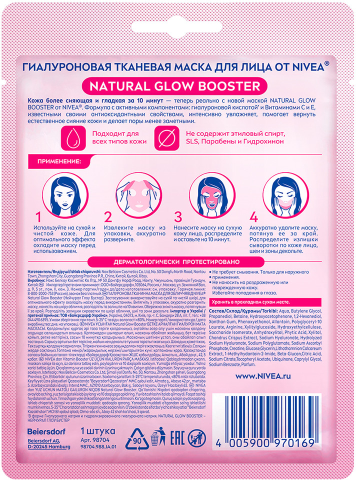 NIVEA Маска для лица с гиалуроновой кислотой «Natural Glow Booster»