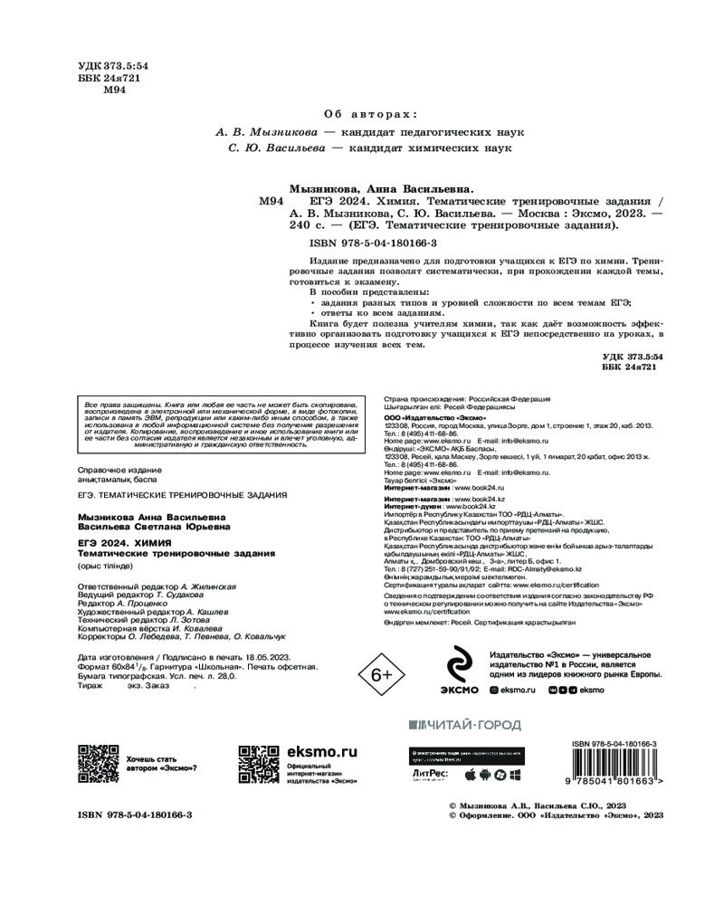 ЕГЭ-2024. Химия. Тематические тренировочные заданияВ данный момент этот товар отсутствует в продаже. Возможно, у нас найдется аналогичный или похожий товар здесь. Серия: ЕГЭ. Тематические тренировочные задания (обложка) Издание предназначено для подготовки учащихся к ЕГЭ по химии. Тренировочные задания позволят систематически, при прохождении каждой темы, готовиться к экзамену. |