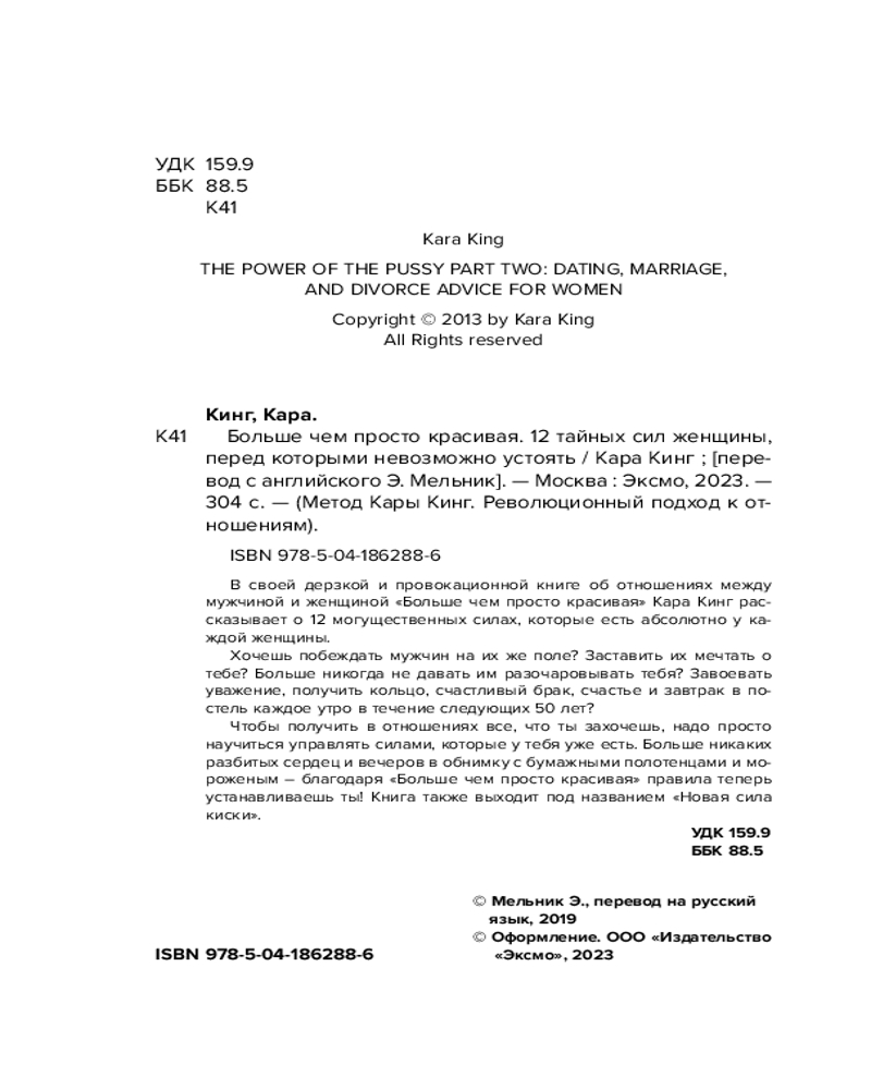 💳 Оплатить за товар можно при получении 🇰🇿 Есть бесплатная доставка по Казахстану от 1 дня 🎁 Копите бонусы с каждой покупки Серия: Метод Кары Кинг. Революционный подход к отношениям От автора «Кошки не бегают за собаками». Дерзко, откровенно, шокирующе и современно! Правда об отношениях в современном мире. |