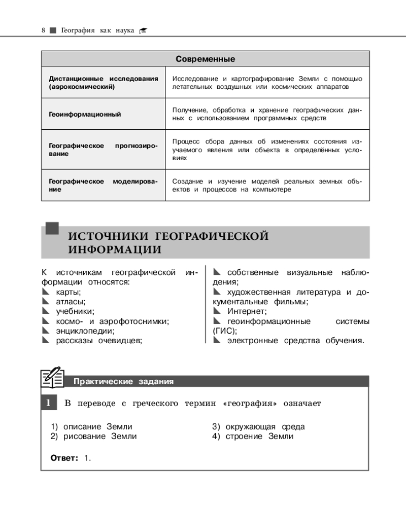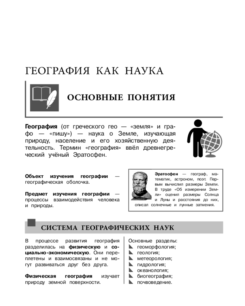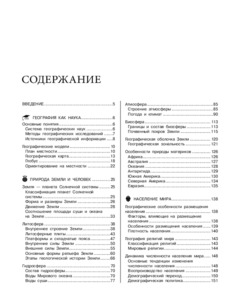 Информация представлена в максимально удобной и эффективной для изучения и запоминания форме — в схемах и таблицах, что обеспечит плодотворную и быструю подготовку к урокам, контрольным и различным экзаменам. В пособии можно найти все основные разделы предмета: «География как наука», «Природа Земли и человек», «Население мира», «Мировое хозяйство», «Природопользование и экология», «Регионы и страны мира».