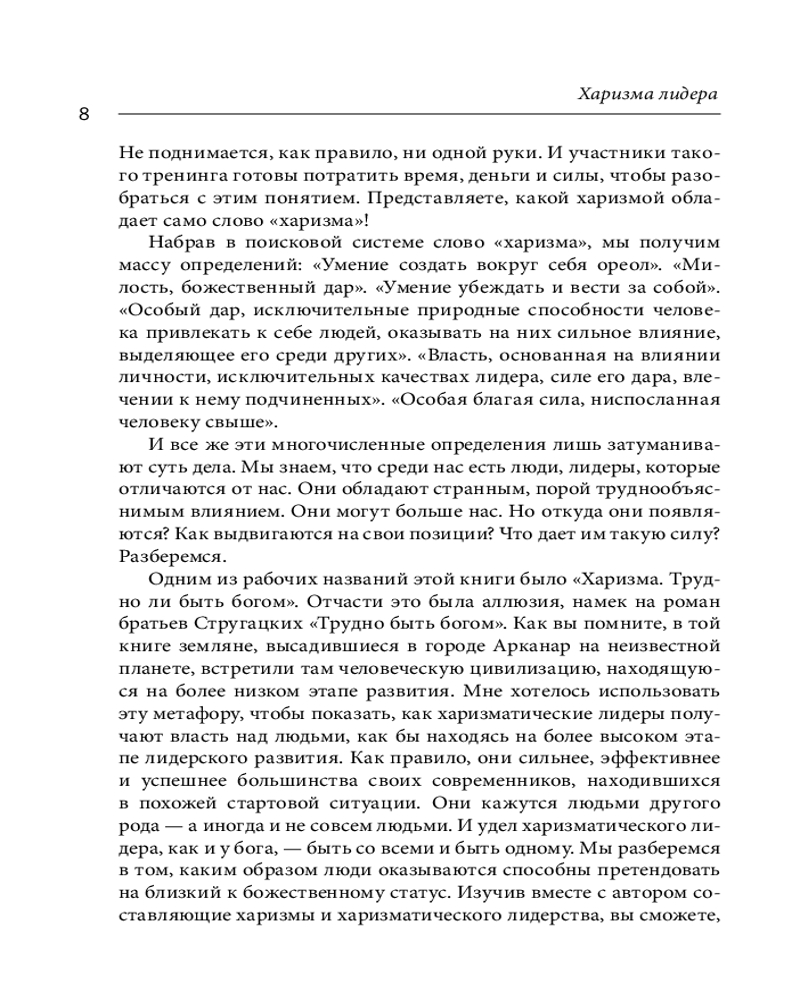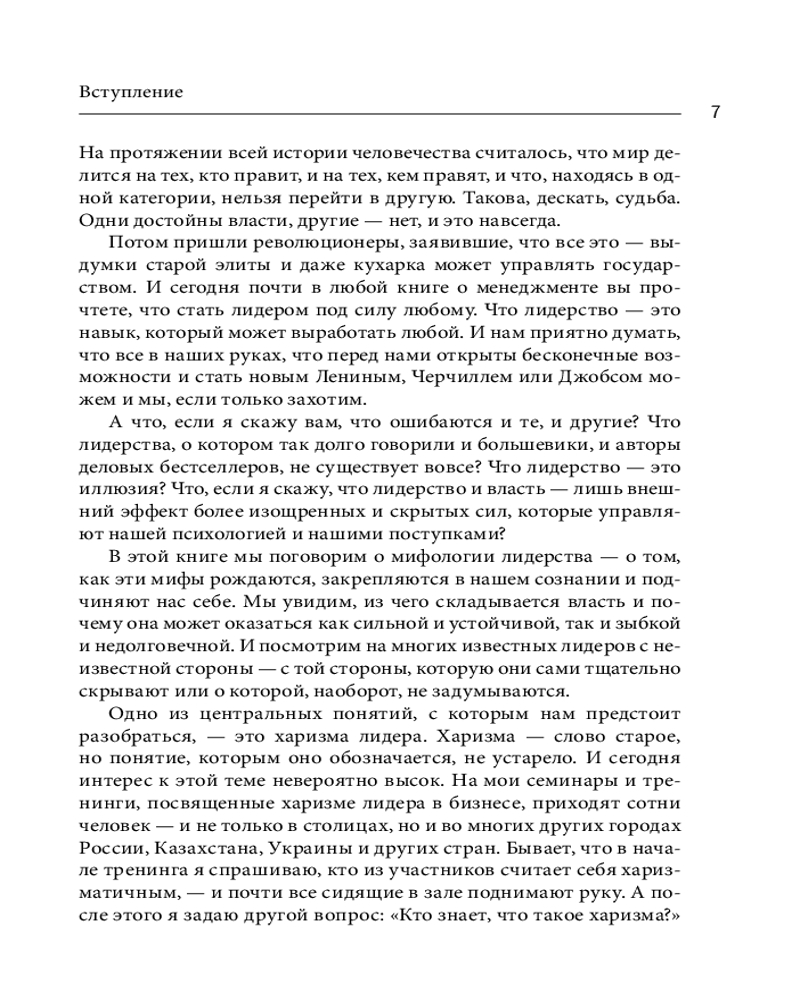 Можно ли стать харизматическим лидером? Ответ очевиден: да. Врожденная харизма, харизма как дар судьбы или крови — это миф. Он выгоден людям, уже обладающим властью. Лидеры — не особая раса и не особый подвид людей.