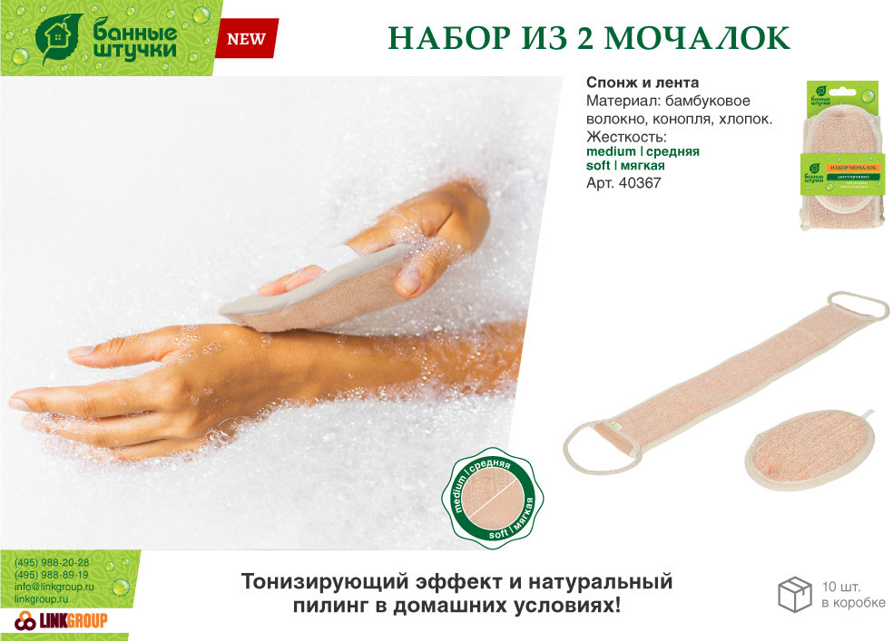 💳 Оплатить за товар можно при получении 🇰🇿 Есть бесплатная доставка по Казахстану 🎁 Копите бонусы с каждой покупки Набор из 2 мочалок включает самые популярные формы: мочалка-лента и мочалка-спонж. Данный набор отлично подходит тем, кто предпочитает натуральные материалы. Мочалки имеют две стороны: мягкую — для бережного ухода за кожей и среднюю — для достижения легкого массажного эффекта. |