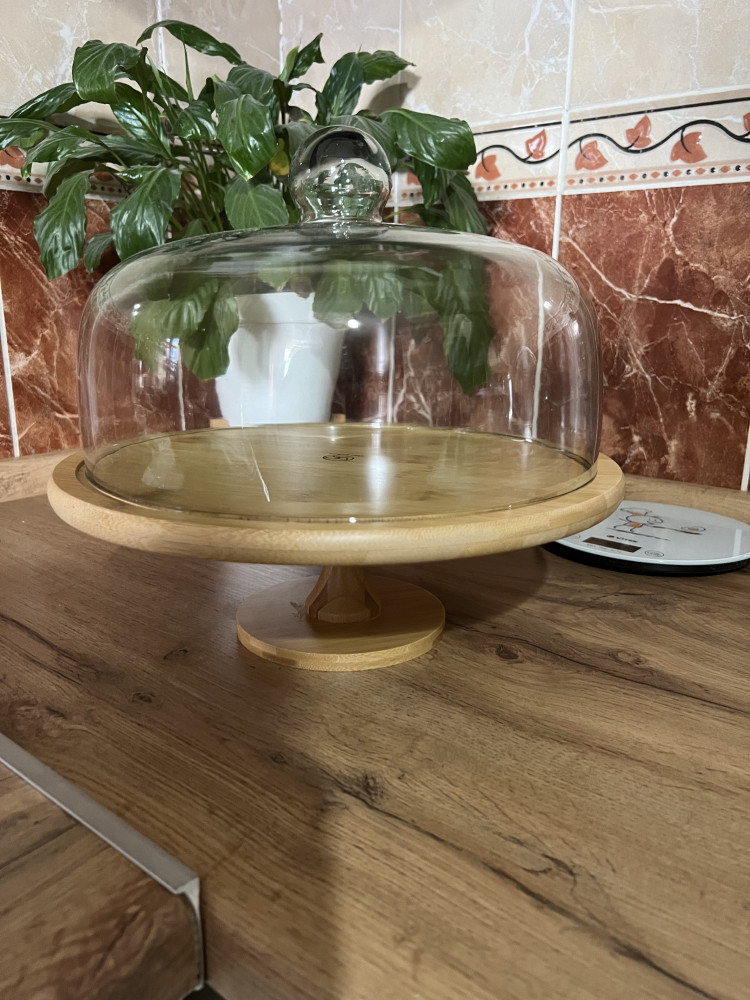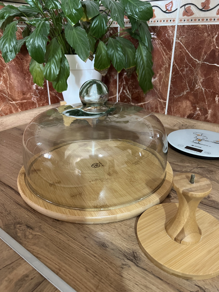 Очень 😍понравилось блюдо . Особенно , когда при распаковке , обнаружилось , что ножка прикручивается . На каждый день удобно использовать без ножки , а на праздничном столе , места всегда мало , поэтому ножка будет очень кстати ☝🏼 по качеству претензий нет , дерево обработано отлично , очень гладкая деревянная поверхность . Крышка не тяжелая , классно , что высокая , подойдет для хранения не только пирогов , но и тортов . Спасибо Flip ❤️