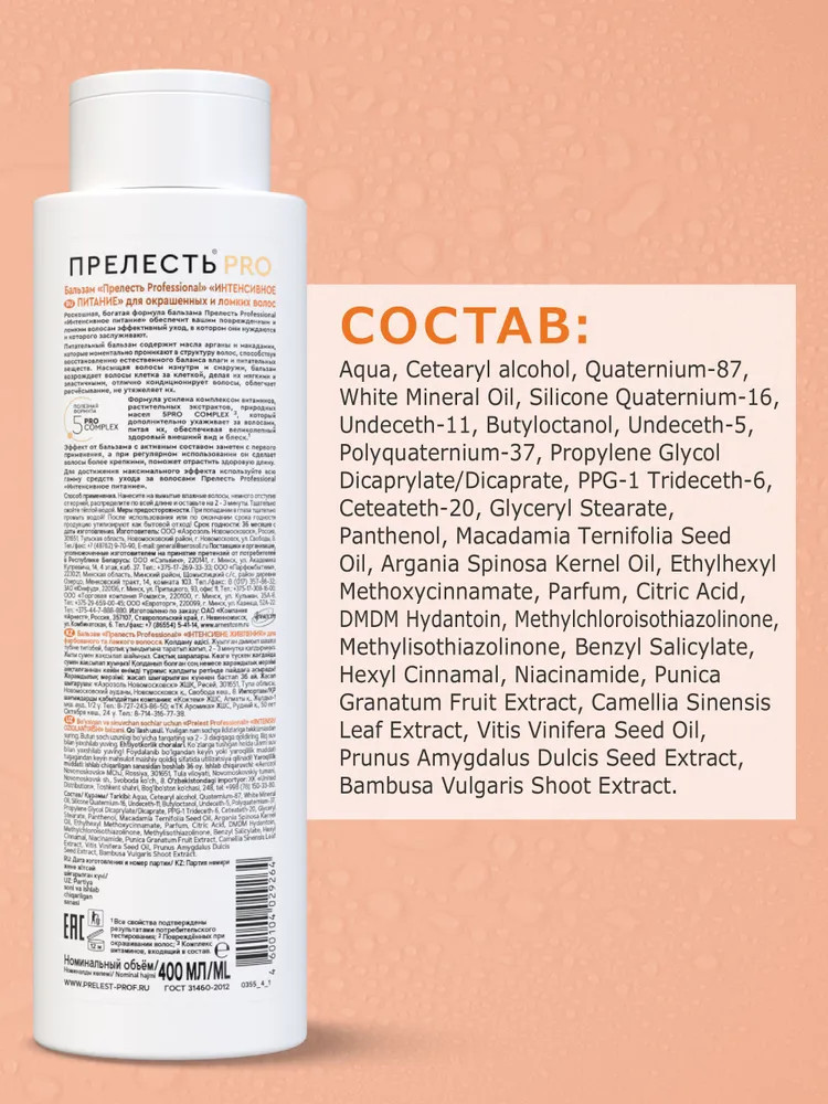 Прелесть Professional Бальзам для волос «Интенсивное питание»В данный момент этот товар отсутствует в продаже. Возможно, у нас найдется аналогичный или похожий товар здесь. Серия: Интенсивное питание Бальзам для волос Прелесть Pro Интенсивное питание — это 100% гладкие и послушные волосы. В составе бальзама нет SLS и его можно использовать после процедуры ламинирования для закрепления и сохранения эффекта. |
