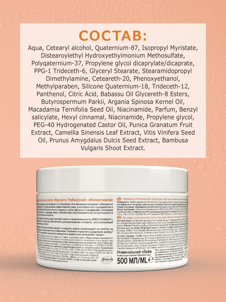 Прелесть Professional Маска для волос «Интенсивное питание»