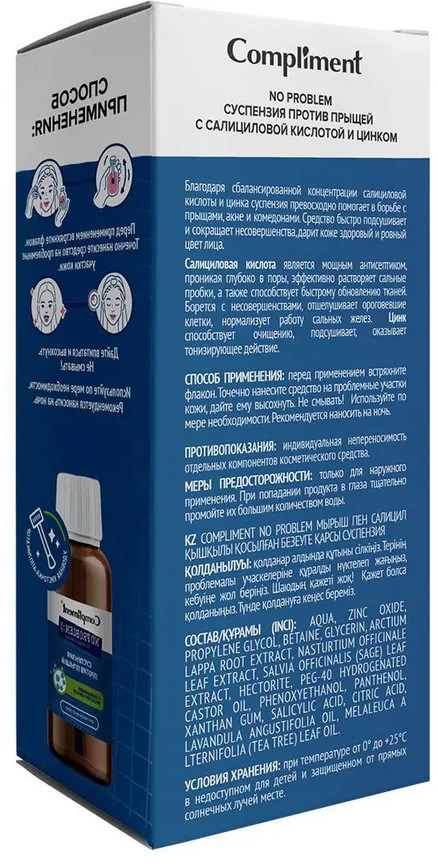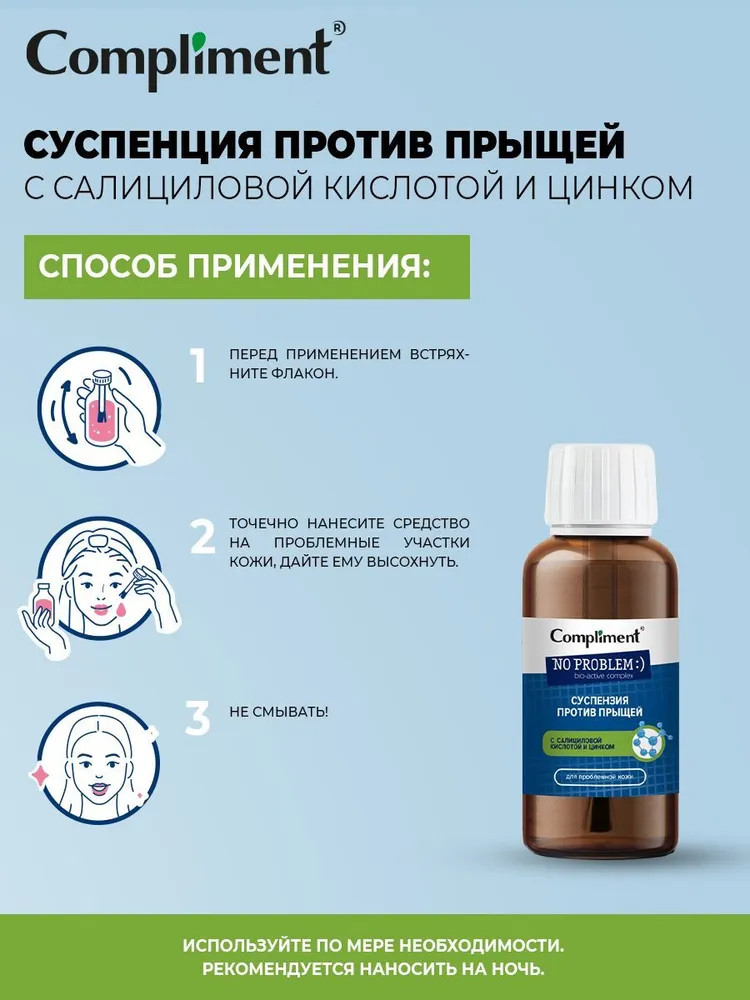 Compliment Суспензия для лица с салициловой кислотой и цинком+58 подсушивает прыщи устраняет воспаления приятный запах хороший состав эффективность